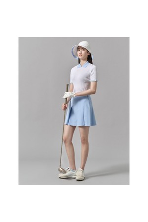 여성 성하 홀메쉬 플리츠 스커트 - 스카이 블루
