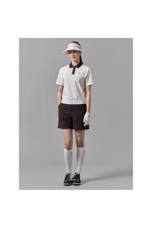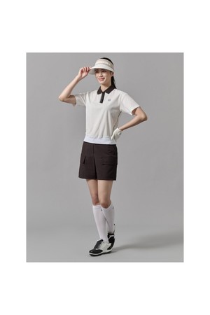 여성 허니콤 피케 반팔 티셔츠 - 아이보리