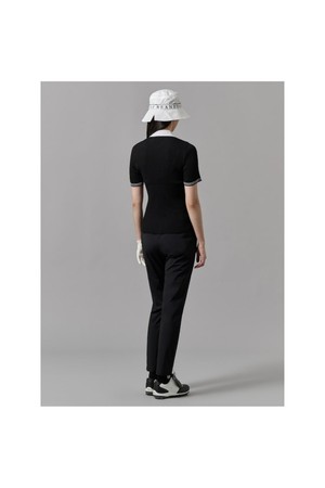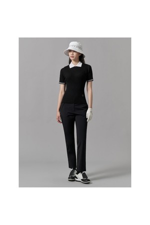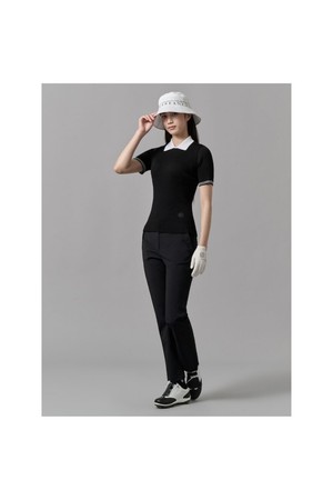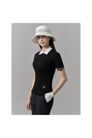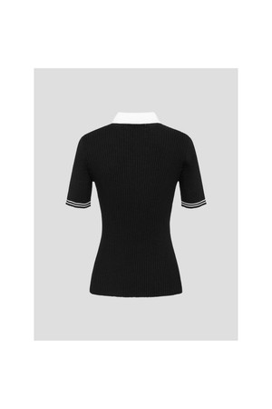 여성 골지조직 반팔 니트 - 블랙