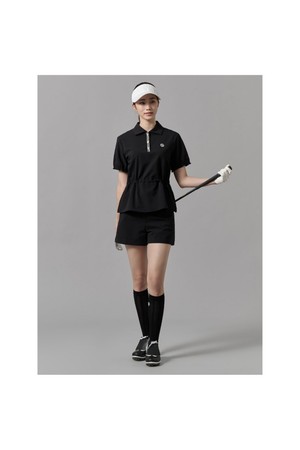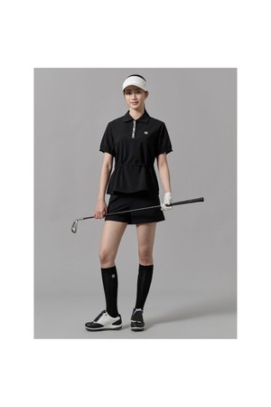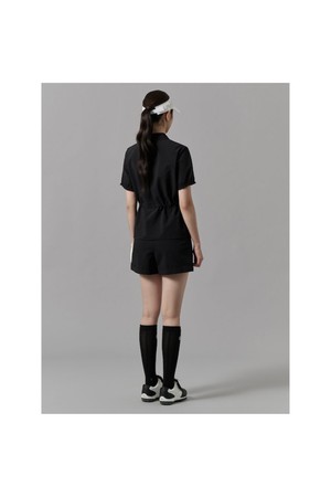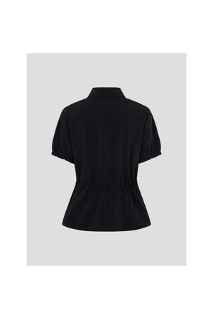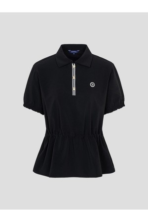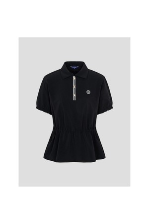 여성 서커 변형칼라 반팔 티셔츠 - 블랙