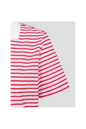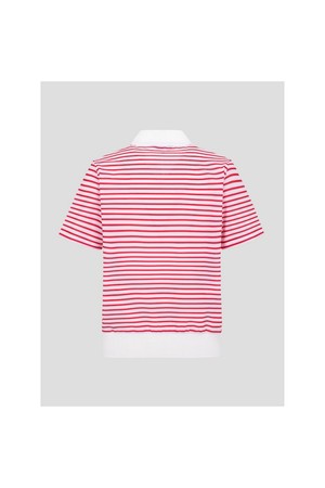 여성 스트라이프 반소매 티셔츠 - 화이트