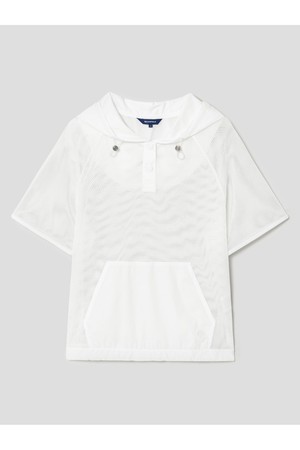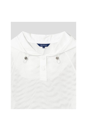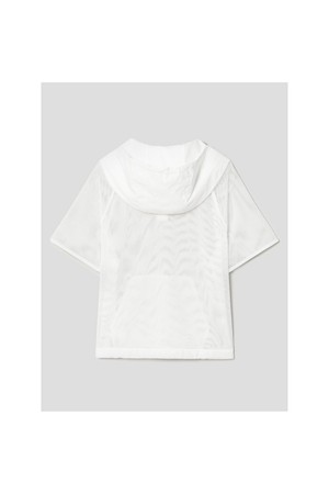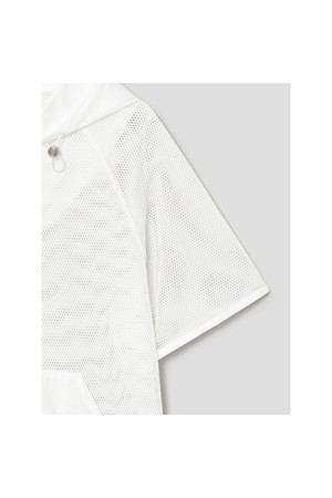 여성 후디 메쉬 반소매 티셔츠 - 화이트