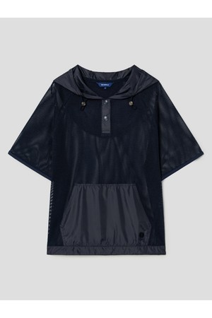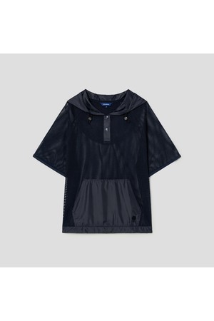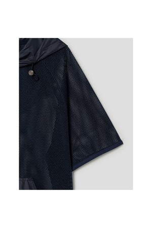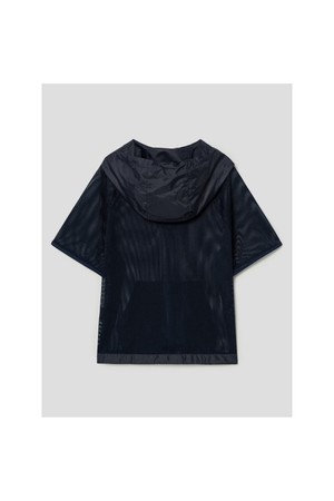 여성 후디 메쉬 반소매 티셔츠 - 네이비