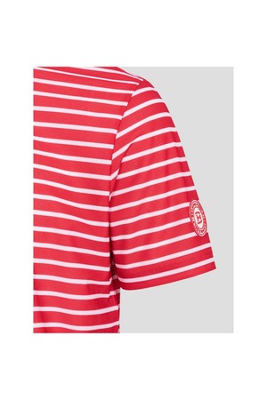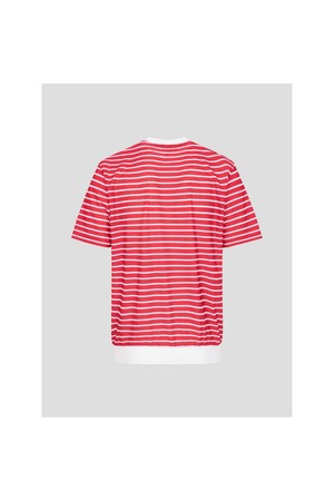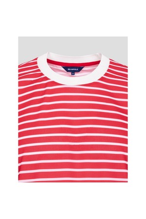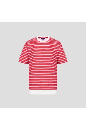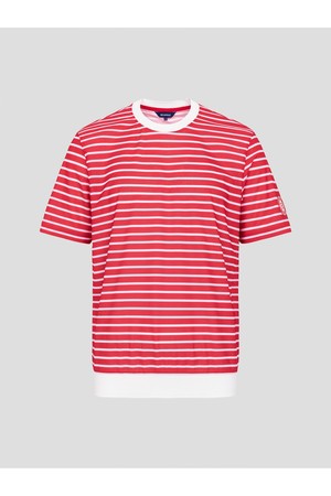 남성 스트라이프 라운드 티셔츠 - 레드