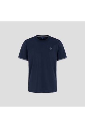 통기성과 청량감이 우수한 소재를 사용한 반소매 티셔츠입니다. 조직의 조밀한 구멍이 통풍을 더 원활하게 해줘 입었을 때 더욱 시원합니다. 밑단 양쪽에는 트임이 있어 넣어 입어도, 꺼내 입어도 멋스럽게 착용이 가능합니다. 소매의 배색 포인트가 밝은 색 하의와 잘 어울려 함께 코디하기 좋습니다.