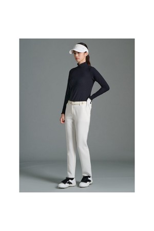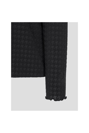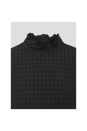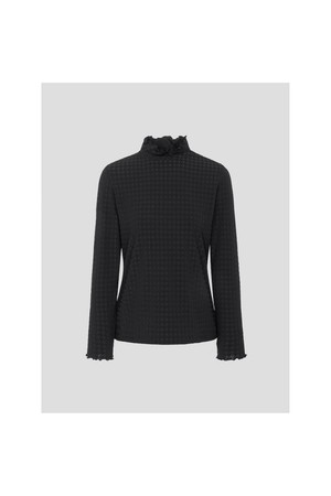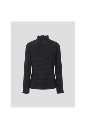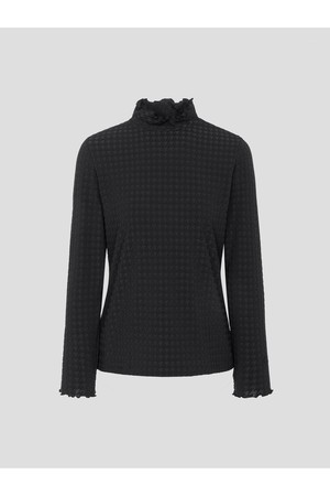 여성 자카드 하이넥 긴소매 티셔츠 - 블랙