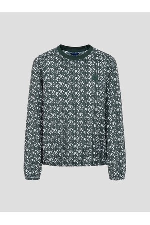 여성 패턴 아노락 긴소매 티셔츠 - 그린