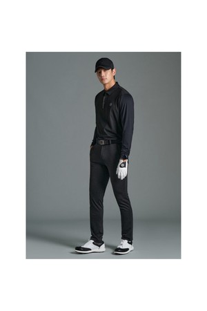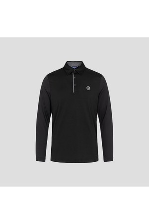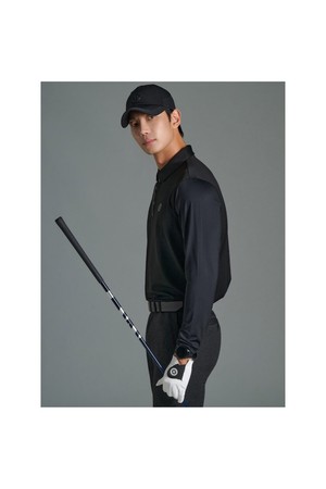 남성 소매 배색 칼라 티셔츠 - 블랙
