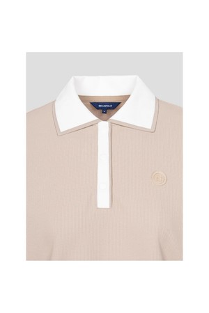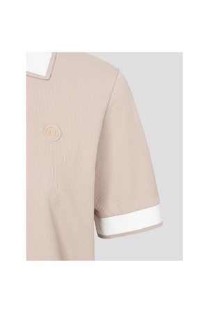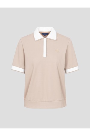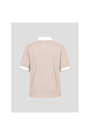 여성 칼라 변형 반소매 티셔츠 - 베이지