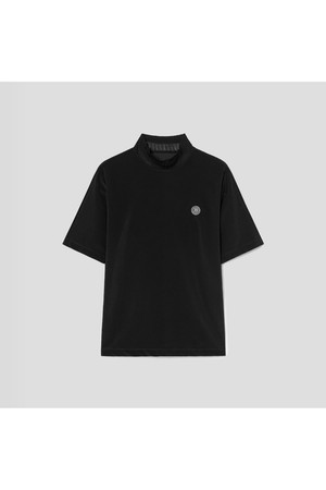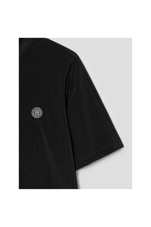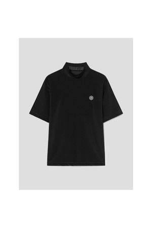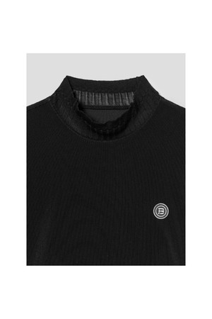 여성 골텍스처 하이넥 반소매 티셔츠 - 블랙