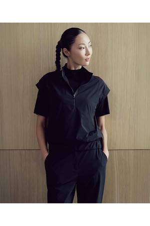 시원한 폴리 혼방소재로 청량함이 포인트인 골조직을 사용한 하이넥 반팔 티셔츠입니다. 얇은 니트로 섬세하게 짠 하이넥이 여성스러움을 더해줍니다. 소매 절개 라인에 변형을 주어 착용 시 포인트가 됩니다. 베스트나 얇은 점퍼와 코디하기 용이합니다.
