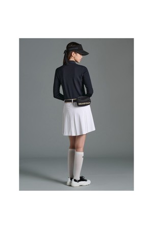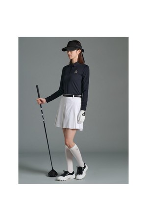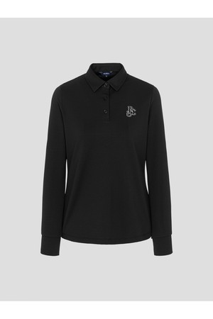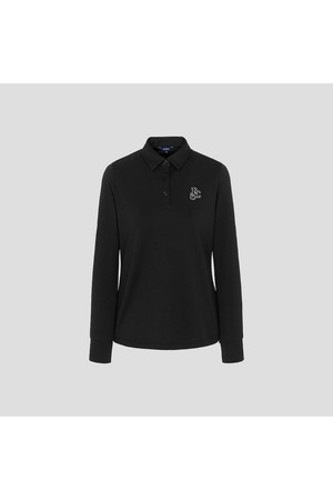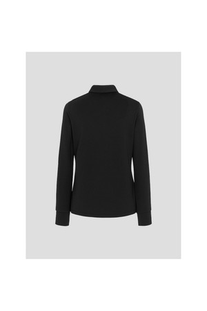 여성 베이직 칼라 긴소매 티셔츠 - 블랙