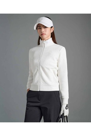 여성 자카드 풀집업 - 화이트