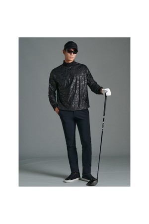 아우터와 이너로 입을 수 있는 티셔츠입니다. 유광의 블랙 컬러 겉감에 새겨진 모노그램 패턴이 고급스러우면서도 스포티한 무드를 자아냅니다. 밑단 스트링을 조절하여 아우터처럼 입을 수 있으며, 스웨터와 함께 방풍 안감처럼 착용할 수 있습니다.
