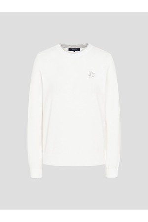 기본핏의 라운드넥에 자수 디테일을 더한 니트 풀오버입니다. 적당한 두께로 날씨에 따라 단품 또는 이너로 활용하기 좋습니다. 고급스러운 자수가 포인트가 되는 아이템입니다.