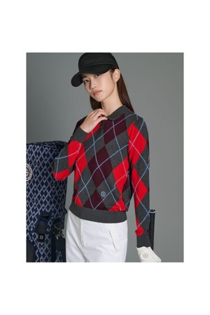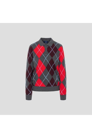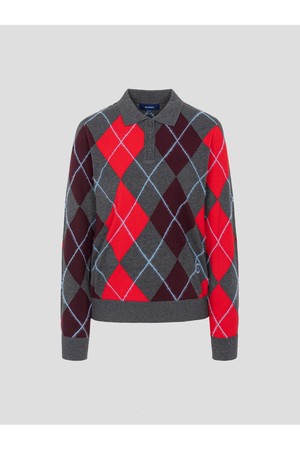 여성 아가일 칼라 니트 풀오버 - 애쉬