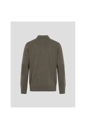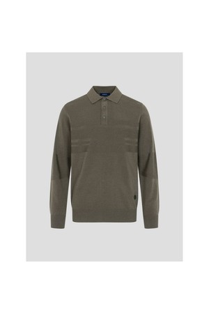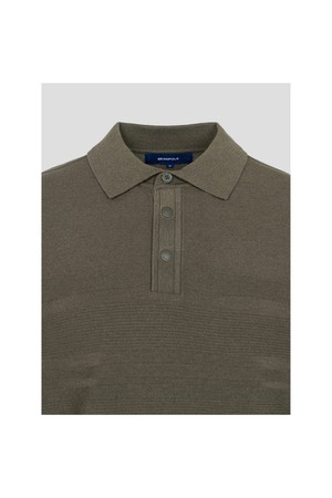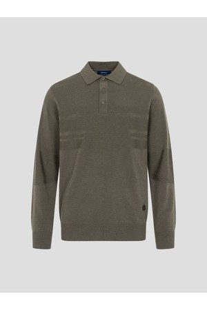 남성 투톤 스트라이프 니트 칼라티 - 카키