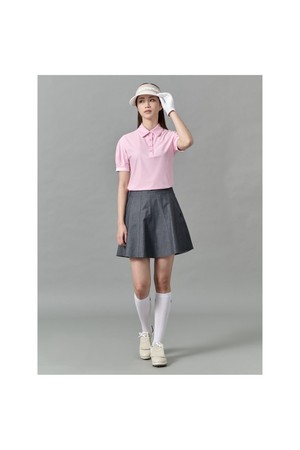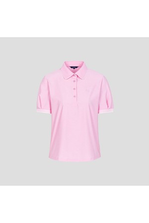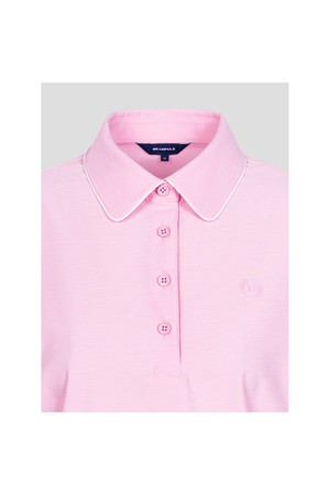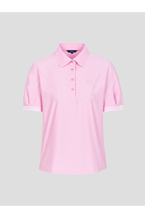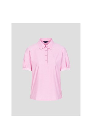 여성 멜란지 칼라 반팔 티셔츠 - 핑크