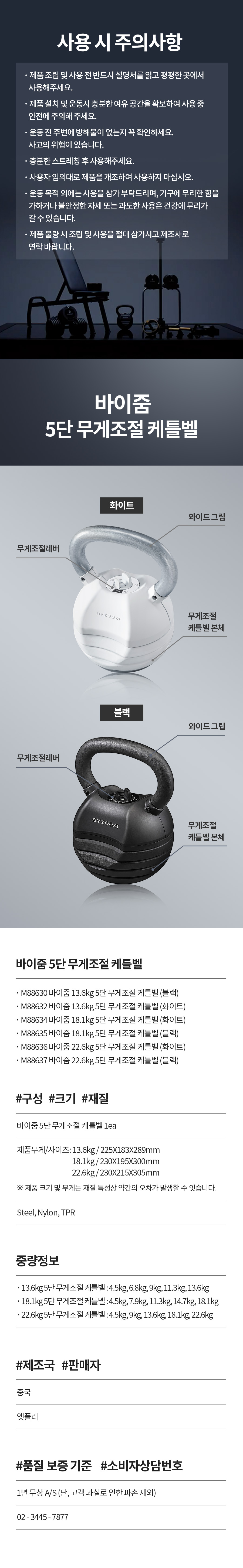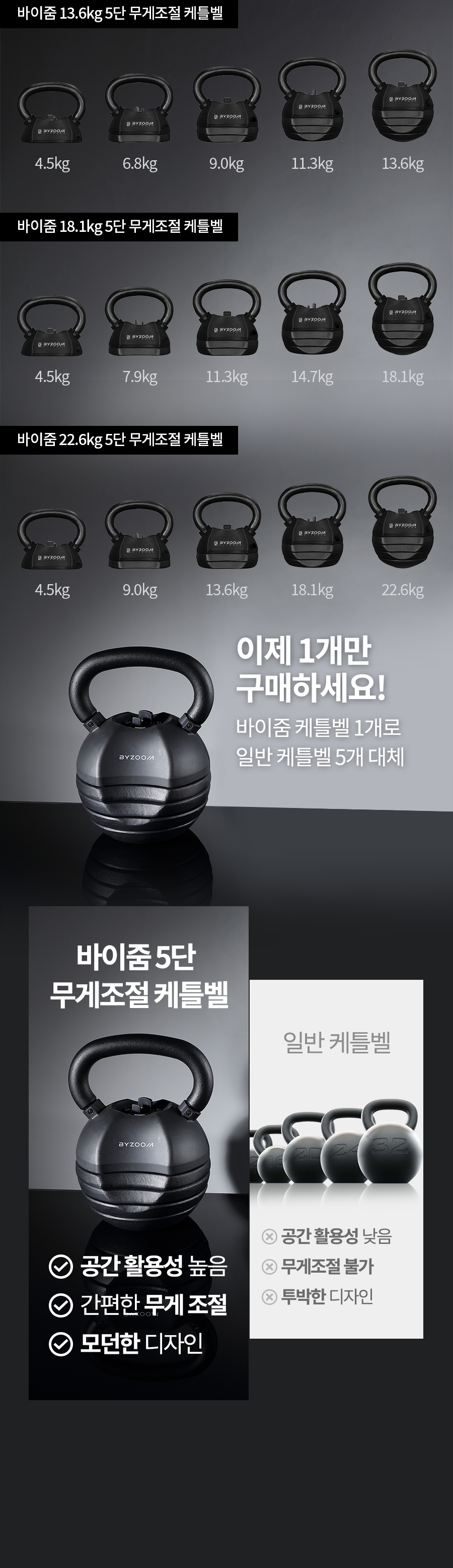바이줌 22.6kg 5단 무게조절 케틀벨 스윙 컨피티션 케틀벨 홈트 홈짐