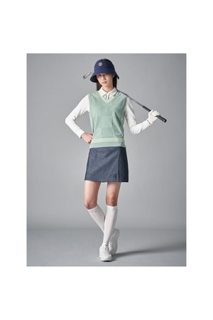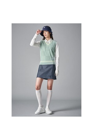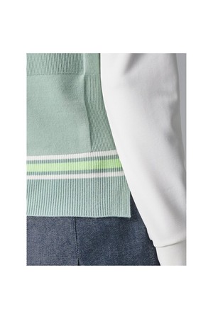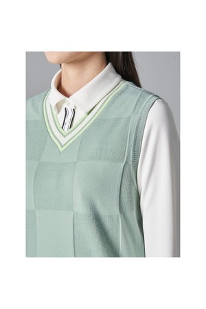 브이넥의 배색 디테일이 산뜻한 포인트를 주는 니트 베스트입니다. 은은한 바둑판 사각 무늬의 체크 조직이 고급스러운 무드를 선사합니다. 좌우 밑단에는 트임을 주어 활동성을 높였습니다. 가벼운 기능성 원사를 사용하여 착용감이 한층 편안합니다. 날씨에 따라 긴소매 티셔츠나 반소매 티셔츠와 함께 착용하여 멋스러운 스타일링을 연출할 수 있습니다.