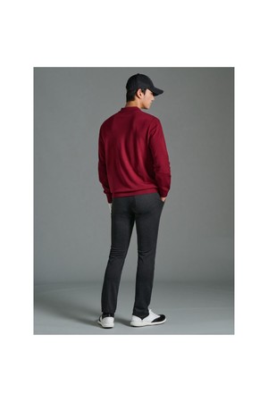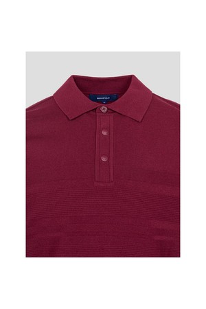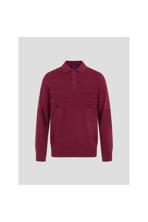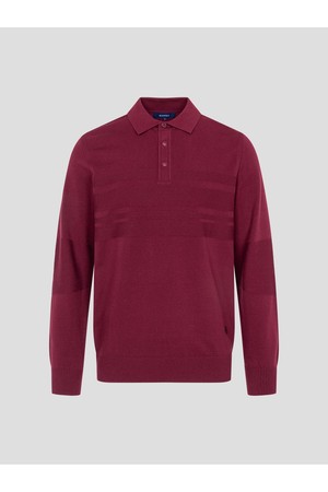 남성 투톤 스트라이프 니트 칼라티 - 와인