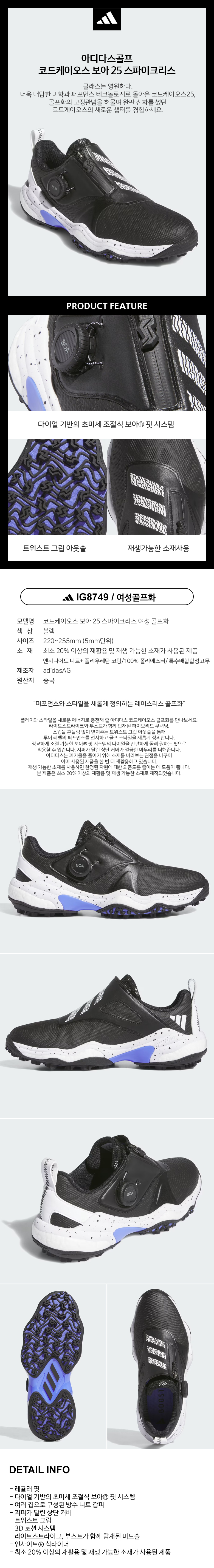 [아디다스골프] IG8749 코드케이오스 보아 25 스파이크리스 여성 골프화