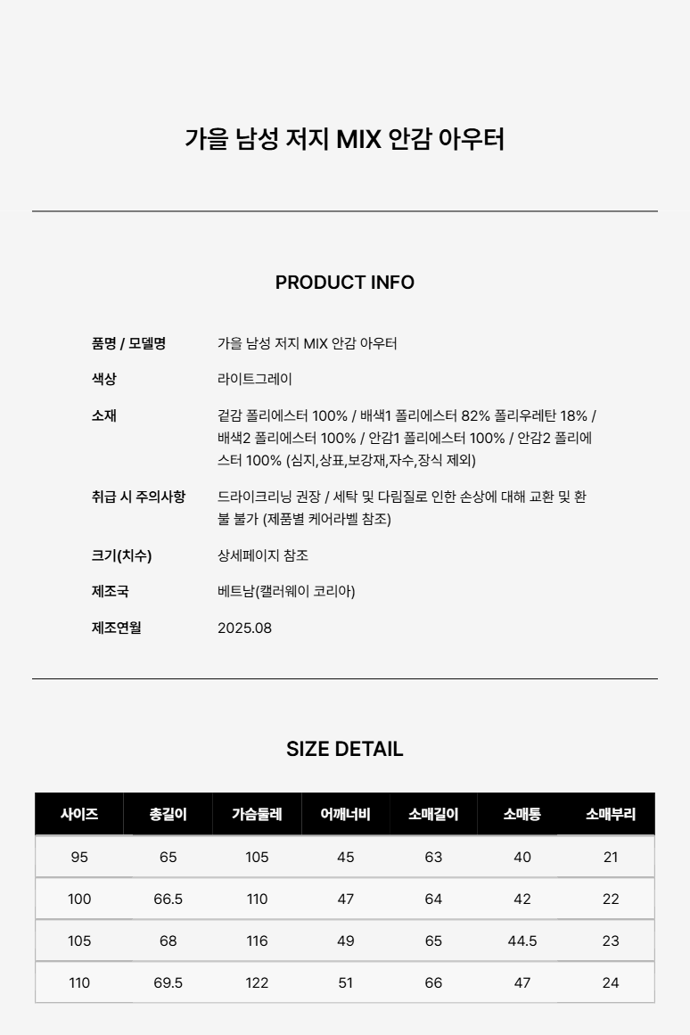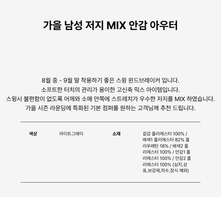 가을 남성 저지 MIX 안감 아우터 LG