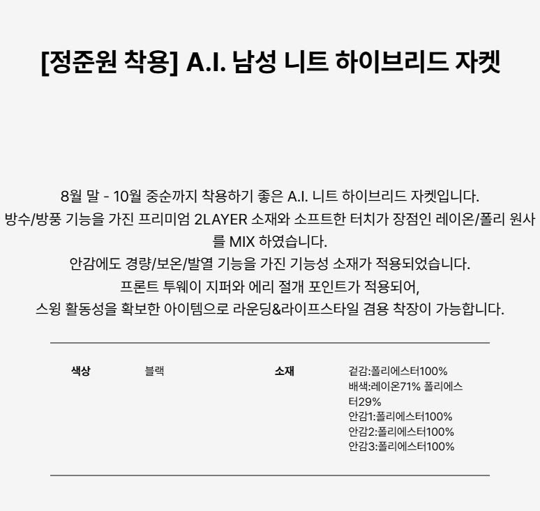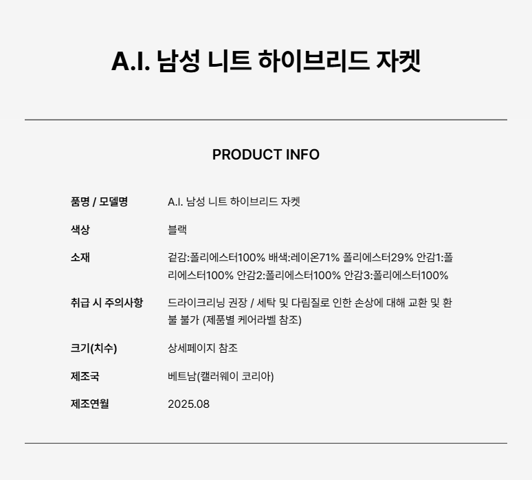 | 제조연월 | 상품상세설명참조 (해당 정보는 실제 상품과 상이할 수 있음. 정확한 제조일은 제품 별도 표기 참고) |