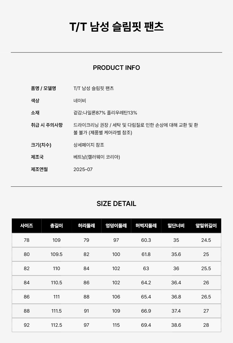 | 세탁방법 및 취급시 주의사항 | 상품상세설명참조 |