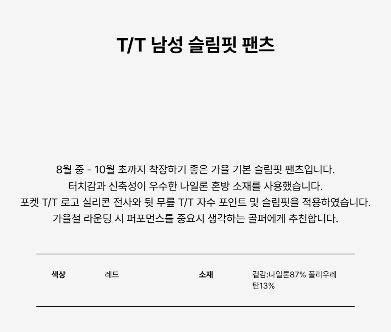 T/T 남성 슬림핏 팬츠 RE