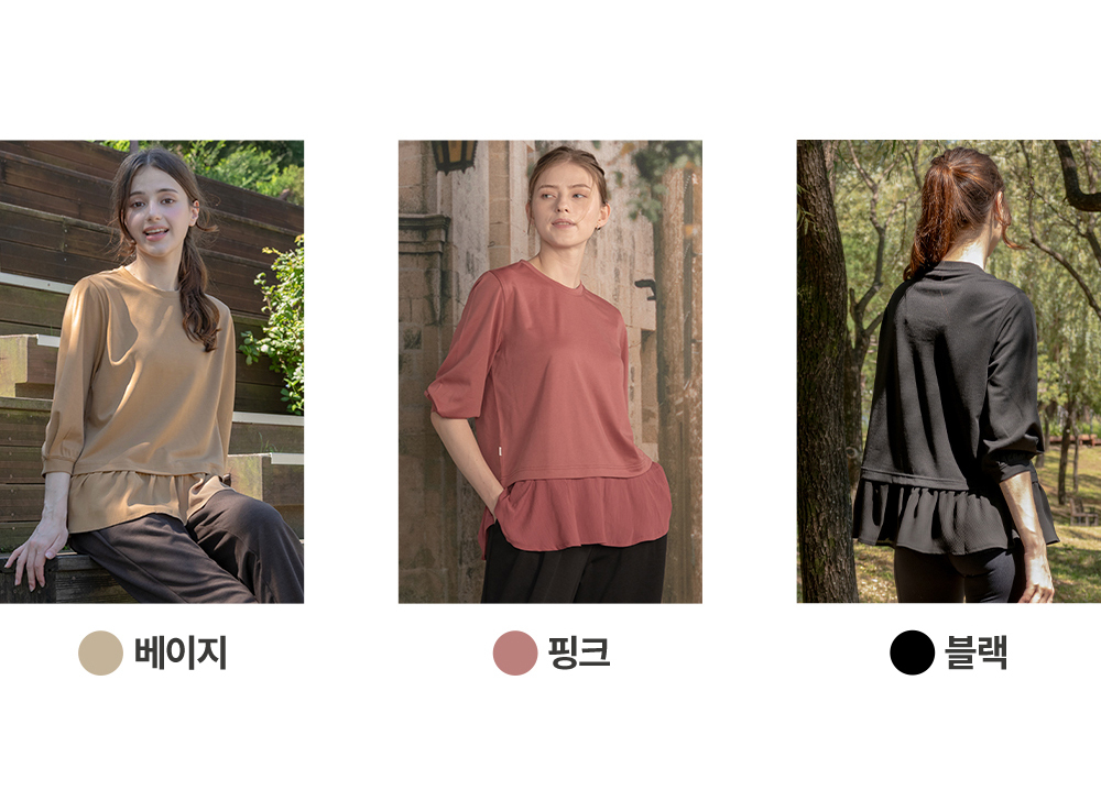 | 소재 | 주원단 : 폴리에스터 95% 폴리우레탄 5% / 쉬폰 : 폴리에스터 100% |