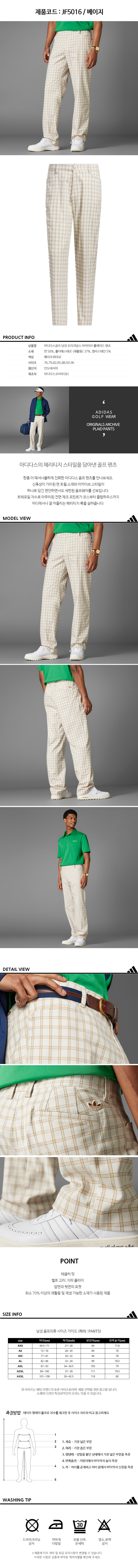 [아디다스골프 오리지널스] 25신상 JF5016 아카이브 플레이드 남성 골프 팬츠