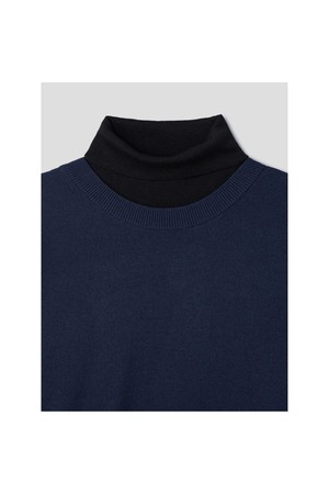 [란스미어 골프] [Golf] 남성 이중 칼라 방풍 반터틀 스웨터 네이비 (LA5851L53R)