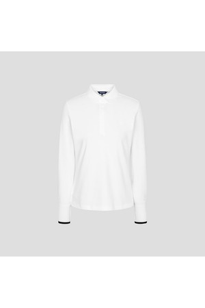 피케 조직의 면 혼방 소재에 섬세한 니트 소매를 더한 긴소매 티셔츠입니다. 니트 소매가 고급스러움을 자아내며, 소맷단의 배색은 또 다른 포인트가 되어줍니다. 기본 컬러로 구성되어, 다양한 하의와 착용하기 좋은 아이템입니다.