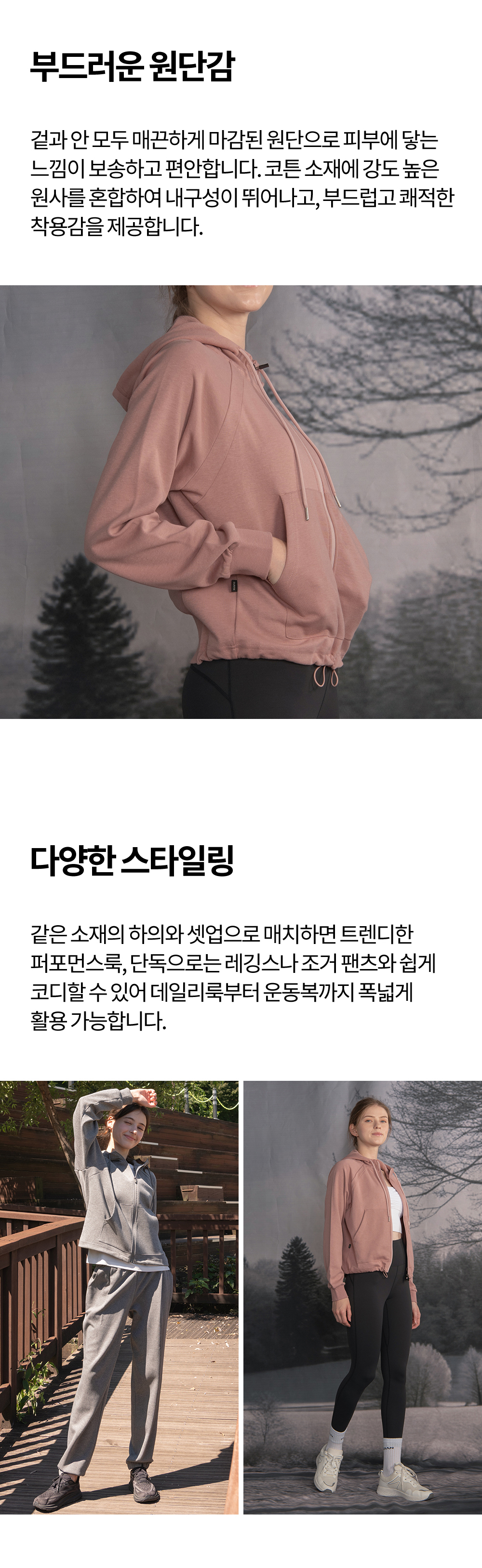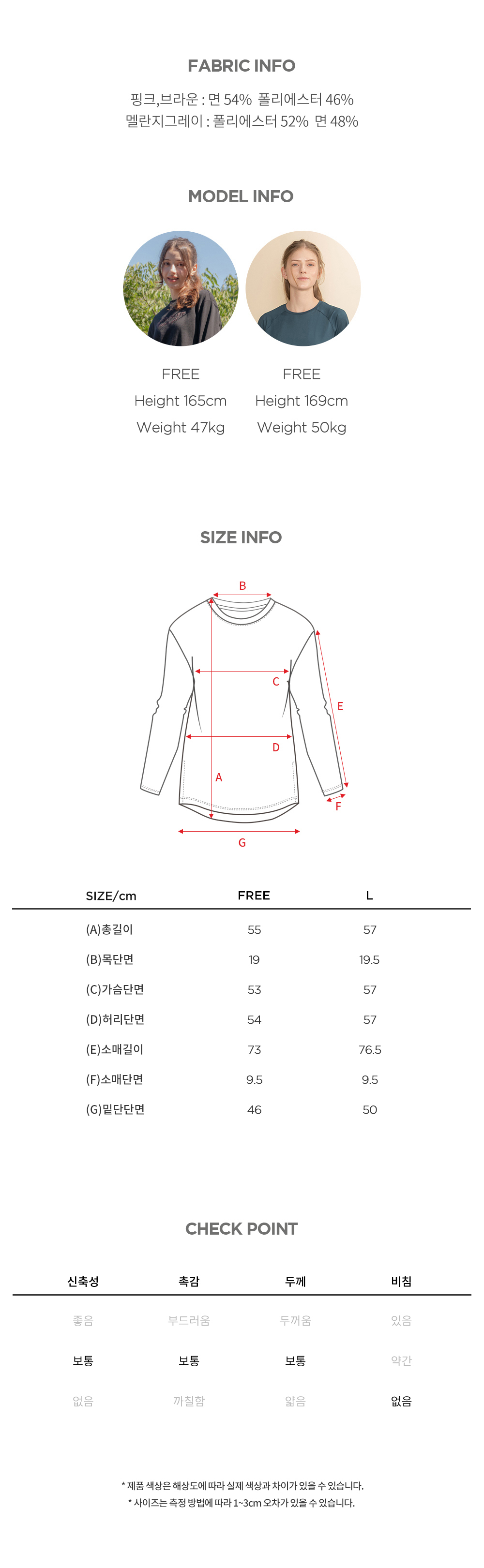 소재핑크, 브라운 : 면 54% 폴리에스터 46% / 멜란지그레이 : 폴리에스터 52% 면 48%