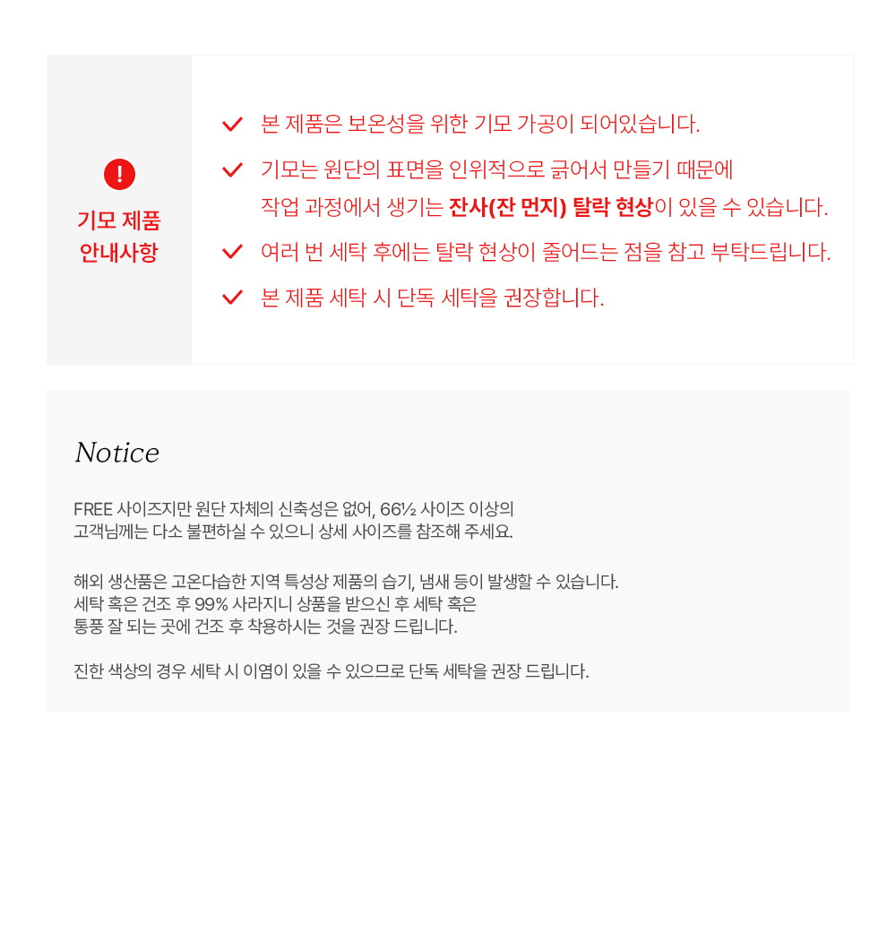 세탁방법 및 취급시 주의사항손세탁 권장