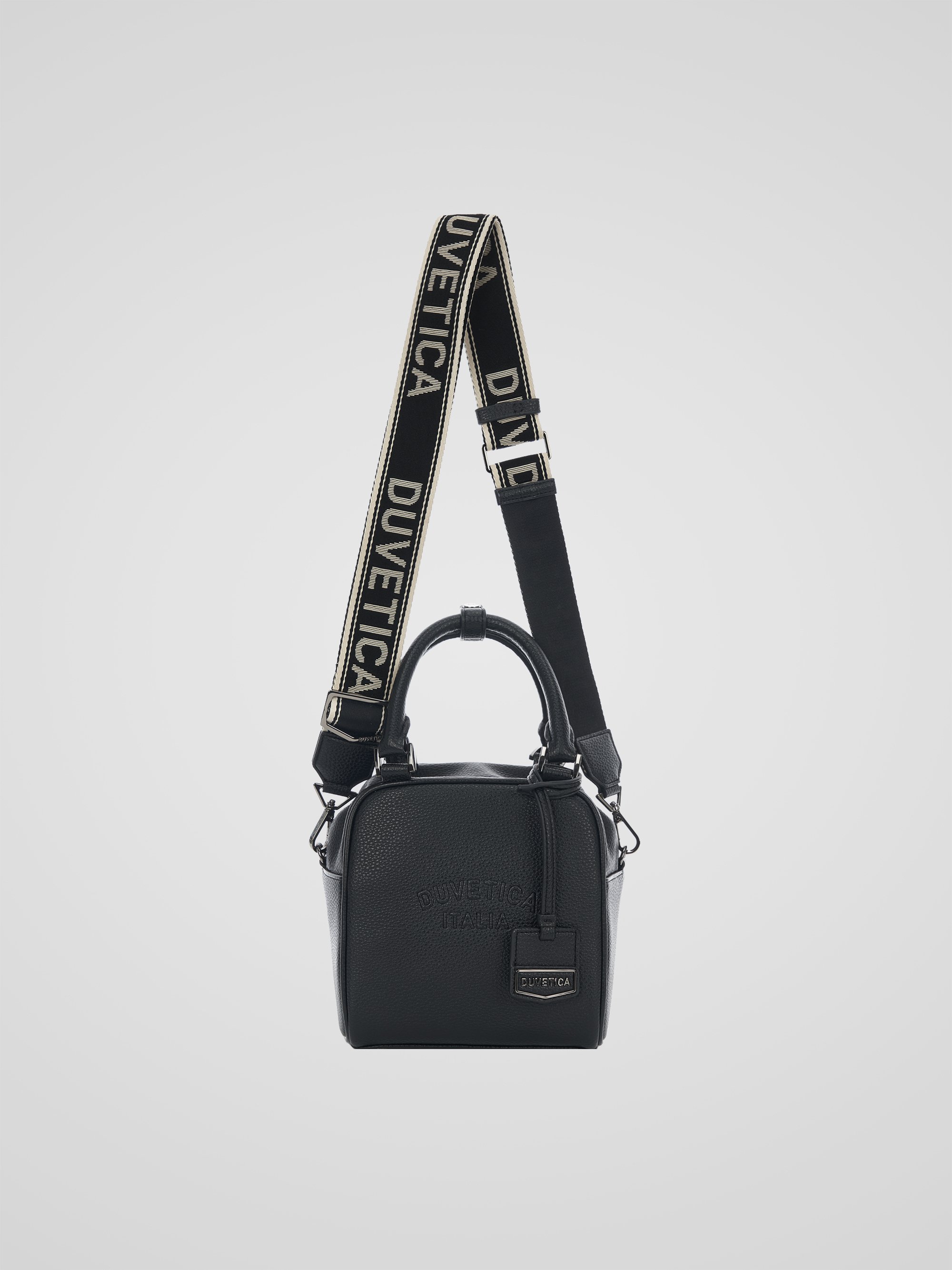 - 베이직한 사각 쉐입에 웨빙, 메달 장식 등으로 포인트를 준 PU 사각 토트백