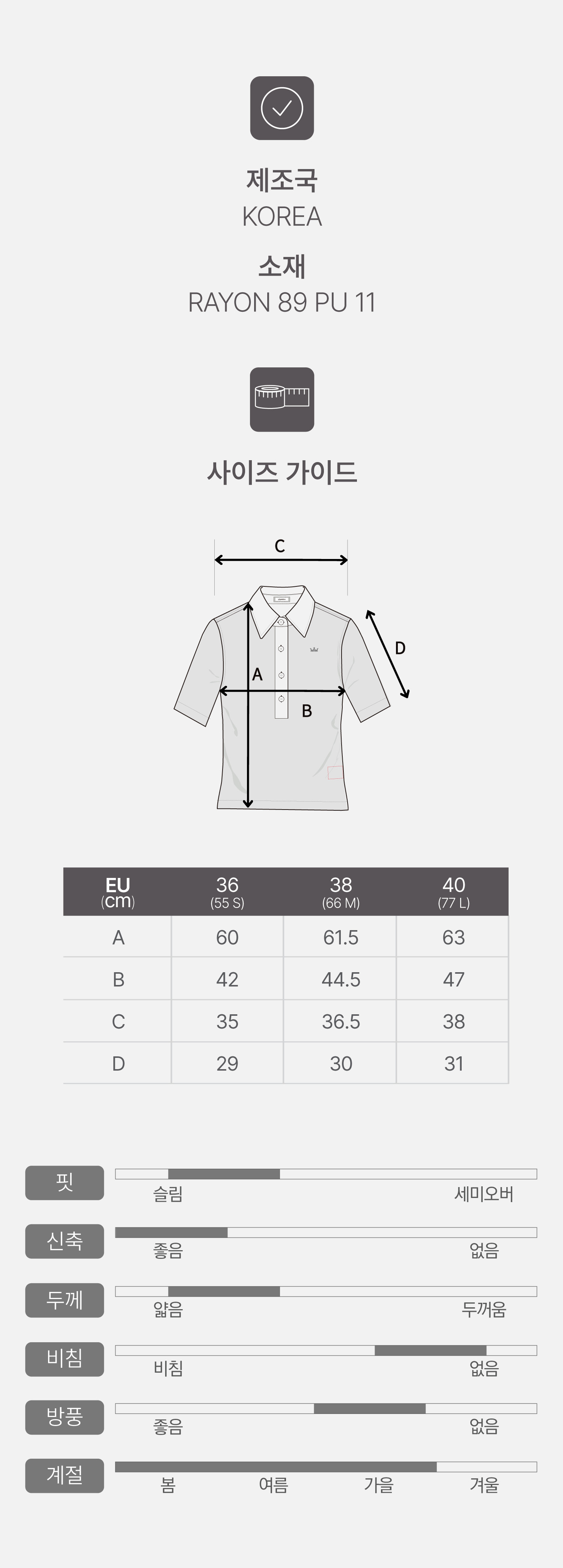 | 세탁방법 및 취급시 주의사항 | 케어라벨을 확인 필수 I 드라이클리닝 권장 I 손세탁 가능 I 염소표백 금지 I 기계 열건조 금지 |