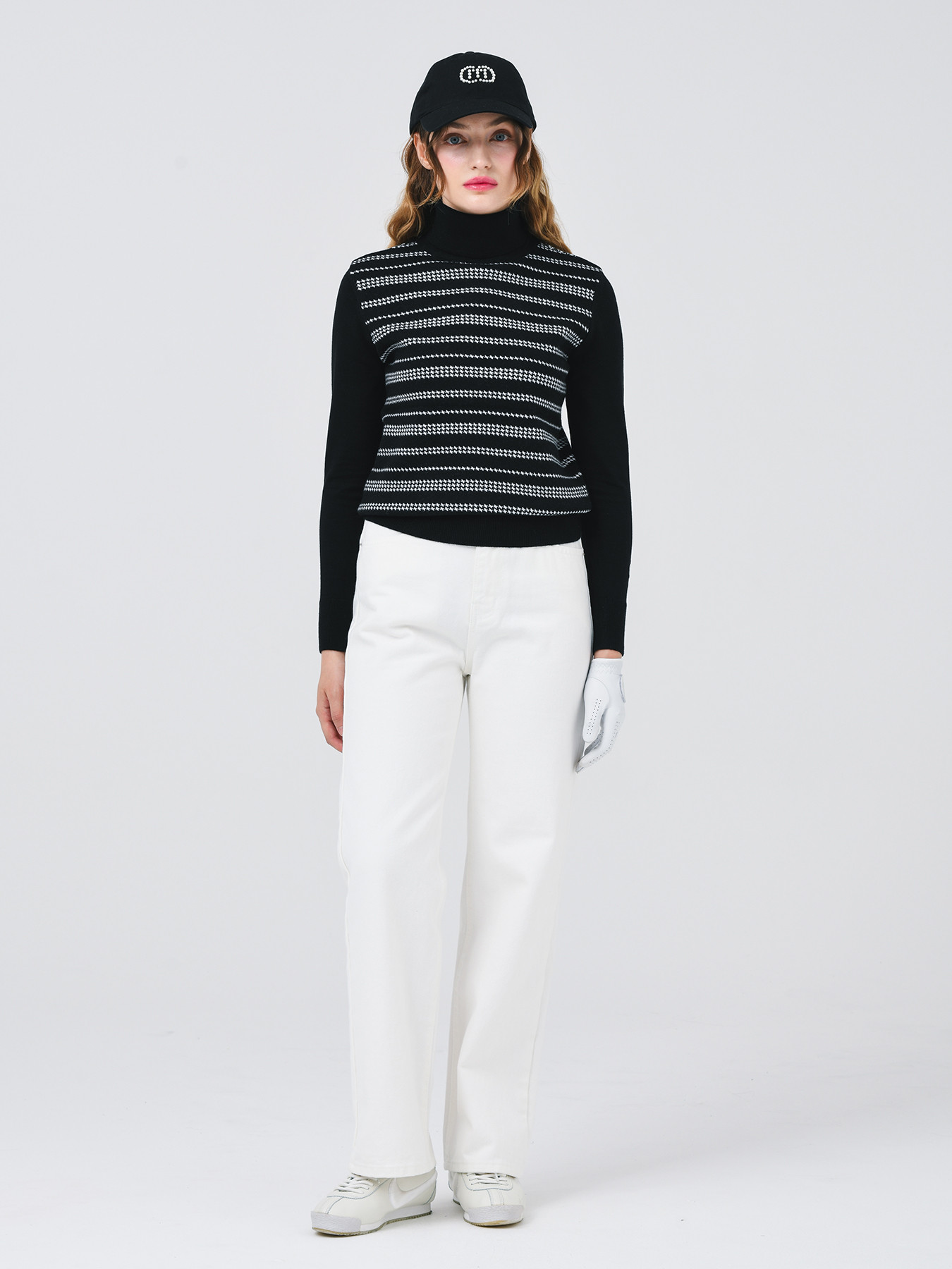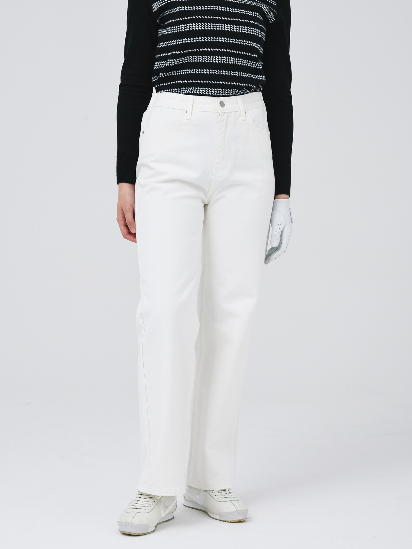 착용시, 힙을 잡아주고, 기본 허리선에 위치한 바지길이는 하체를 길어보이게합니다.