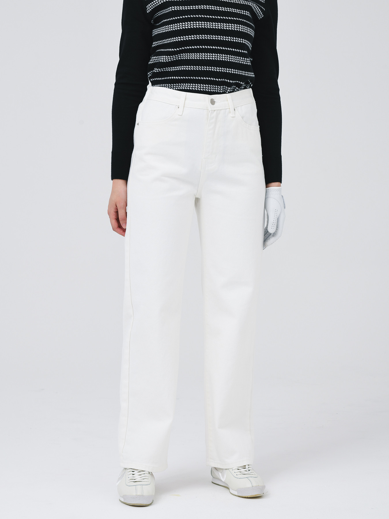25FW 허리 편한 인써트 밴딩 일자 핏 10부 화이트 팬츠