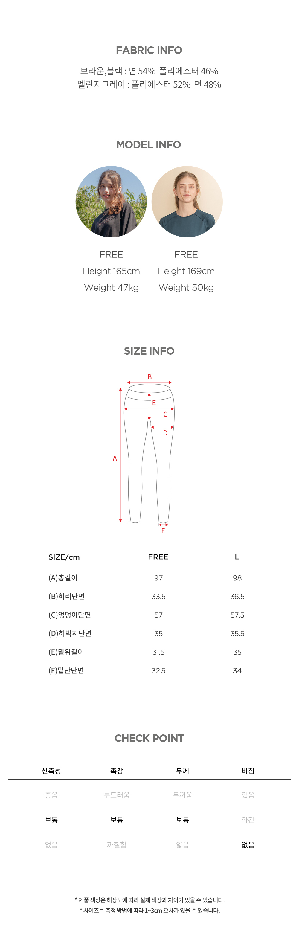 소재브라운, 블랙 : 면 54% 폴리에스터 46% 멜란지그레이 : 폴리에스터 52% 면 48%