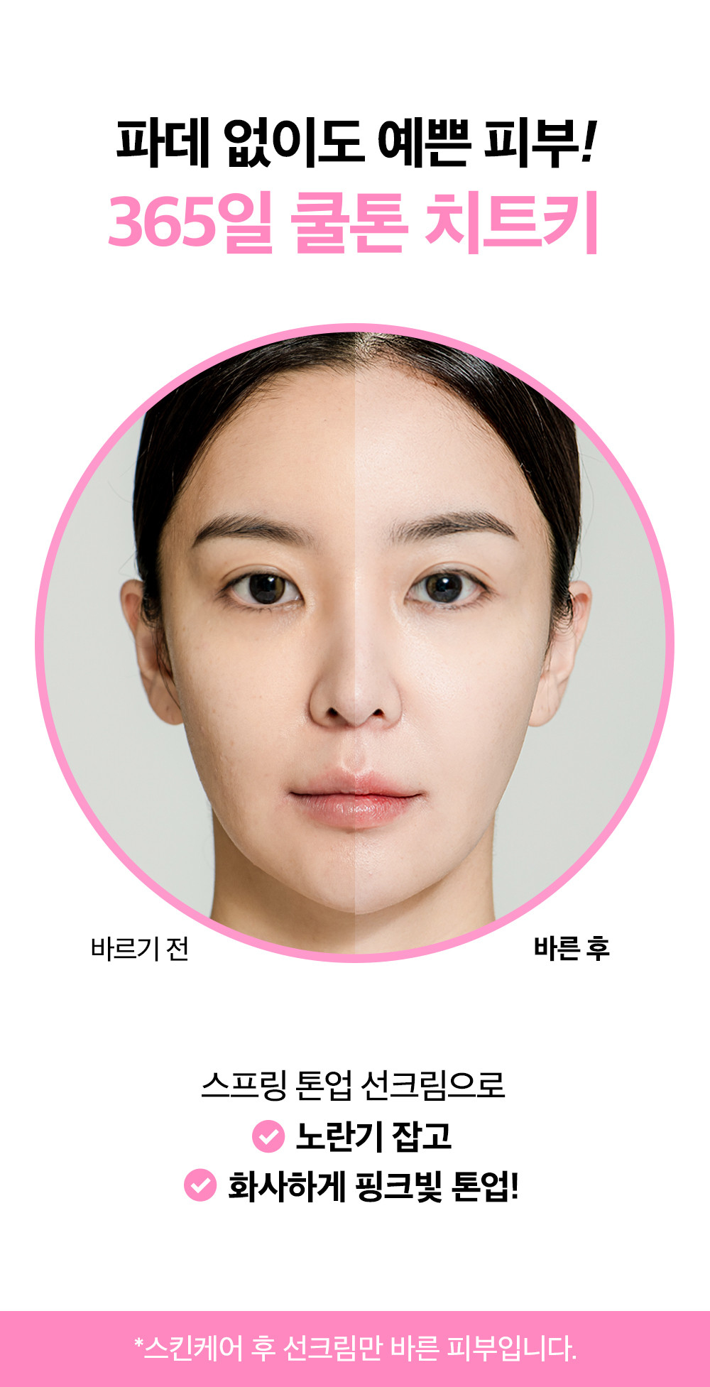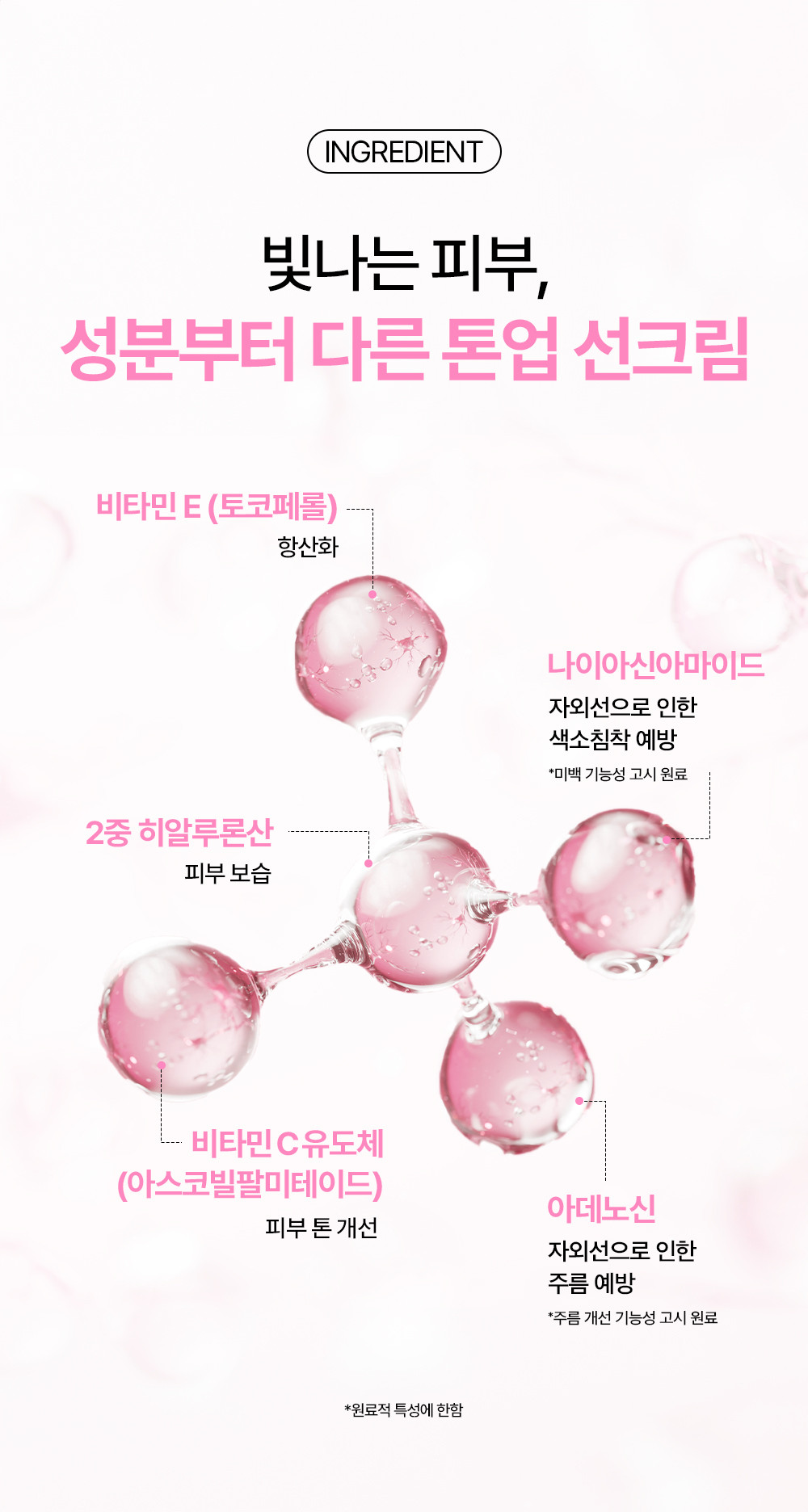 | 화장품법에 따라 기재,표시하여야 하는 모든 성분 | 정제수, 징크옥사이드 (C1 77947), 프로필 헵틸카프릴레이트 , 카프릴릴메티콘, 아이소노닐 아이소노나노에이트, 티타늄디옥사이드 (CI 778 91), 부틸렌글라이콜, 부틸옥틸살리실레이트, 다 이실록세인, 나이아신아마이드, 폴리글리세릴-4 다이아이소스테아레이트/폴리하이드록시스테아 레이트/세바케이트, 폴리글리세릴-3폴리다이메 틸실록시에틸다이메티콘, 아이소도데케인, 폴리 글리세릴-6폴리하이드록시스테아레이트, 소듐하 이알루로네이트, , 아크릴레이트코폴리머, 메틸메 타크릴레이트크로스폴리머, 폴리메틸메타크릴레 이트, 폴리하이드록시스테아릭애씨드, 아크릴레 이트/폴리트라이메틸실록시메타크릴레이트코폴 리머, 마그네슘설페이트, 다이스테아다이모늄헥 토라이트, 다이메티콘크로스폴리머, 1,2-헥산다 이올, 폴리C10-30알킬아크릴레이트, 비닐다이메 티콘/메티콘실세스퀴옥세인크로스폴리머, 트라 이에톡시카프릴릴실레인, 알루미늄하이드록사 이드, 스테아릭애씨드, 폴리글리세릴-6폴리리시 놀리에이트, 폴리글리세릴- |