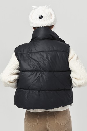 25FW 웰론 패딩 생활 방수 기능 소재 크롭 스트링 블랙 베스트