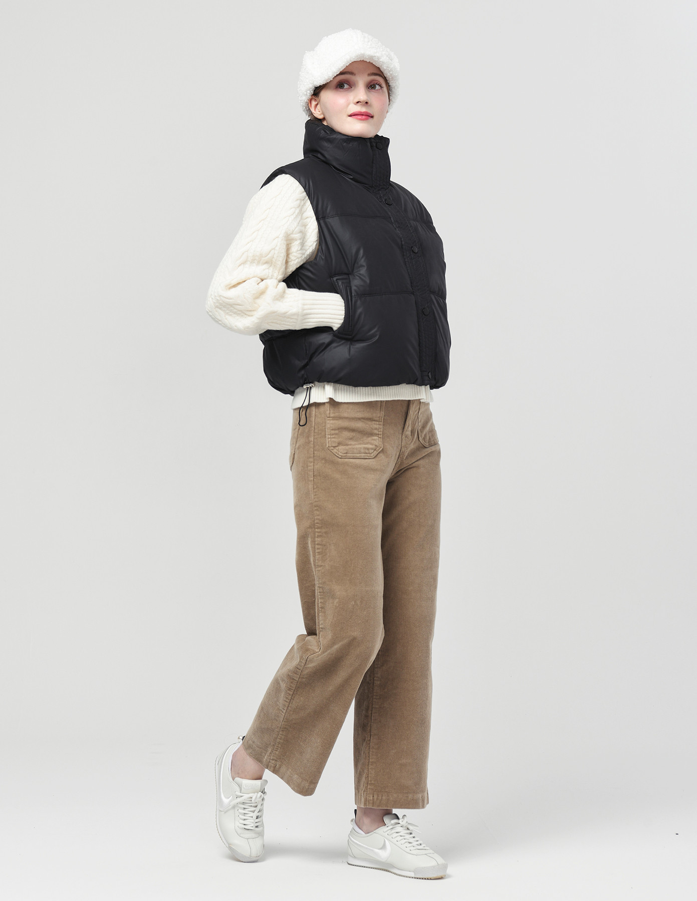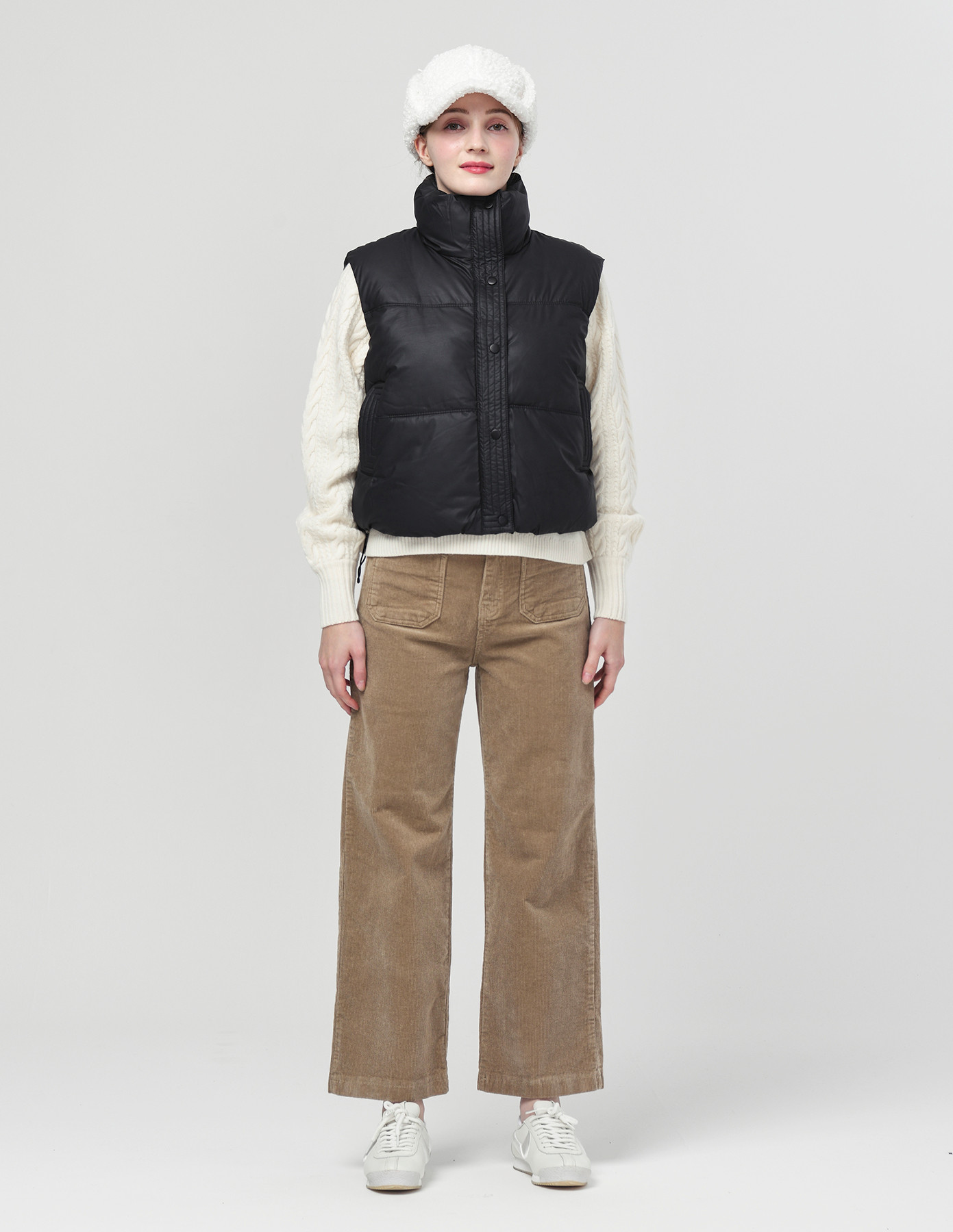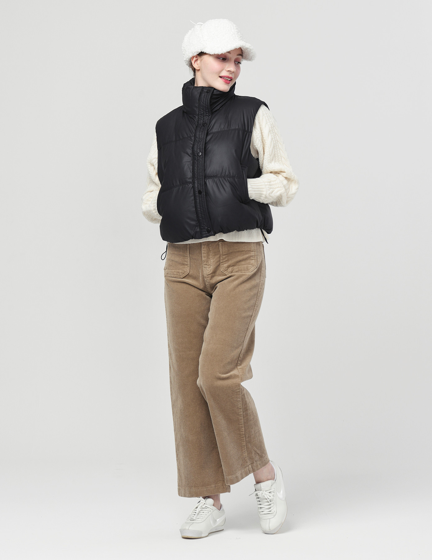 DETAIL:스포티한 감성의 기본형 하이넥 카라 헤비 패딩 베스트입니다.