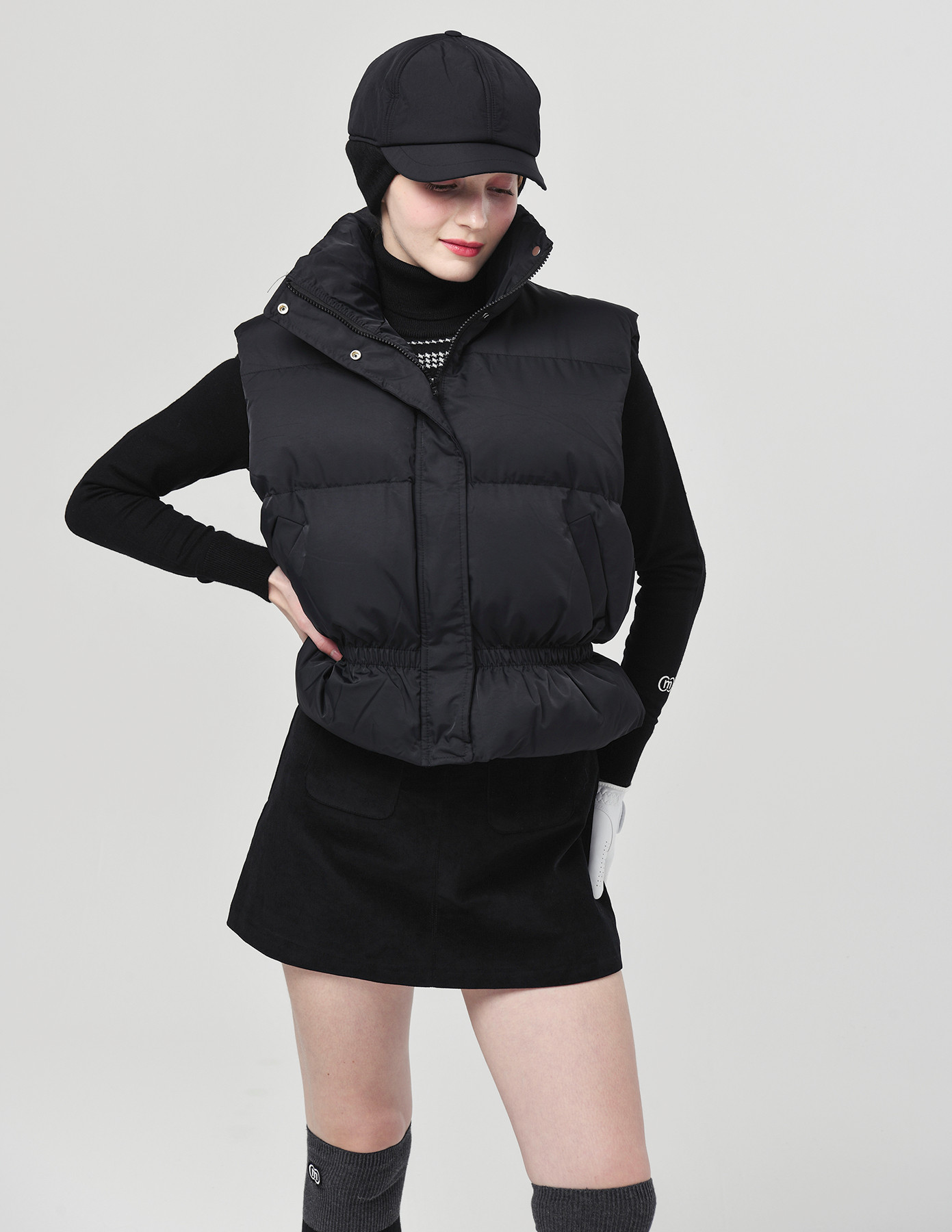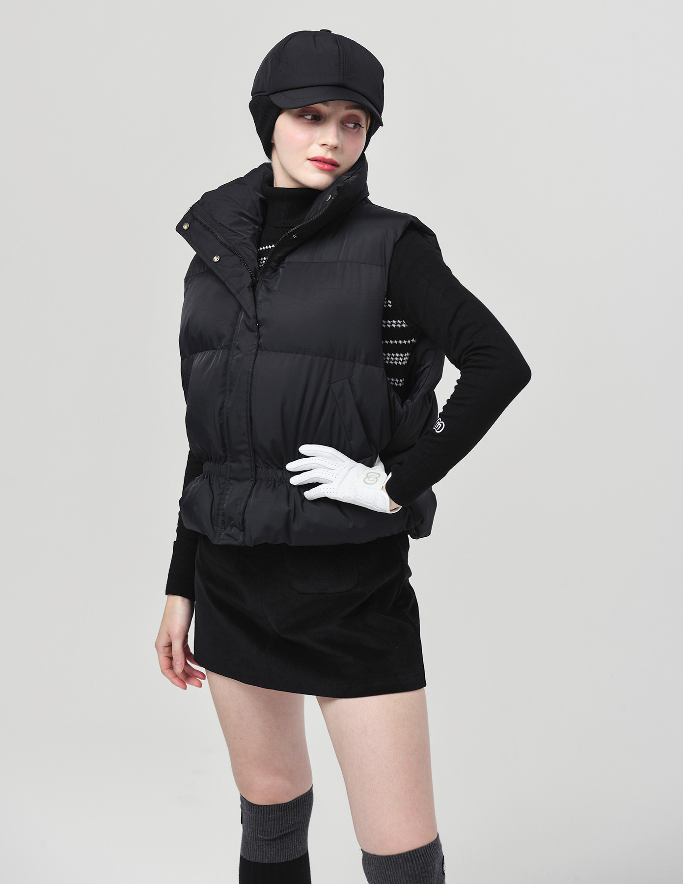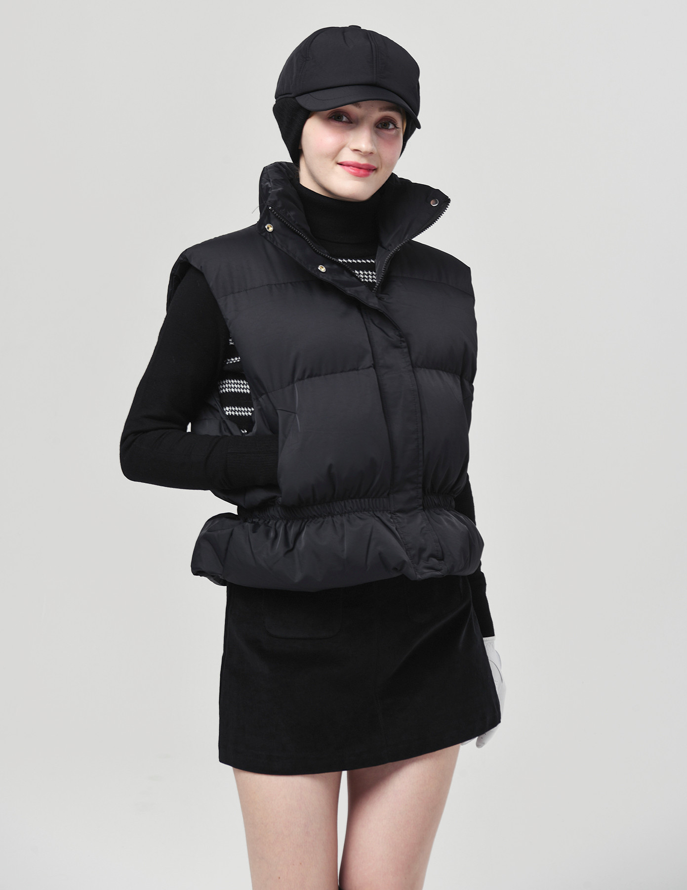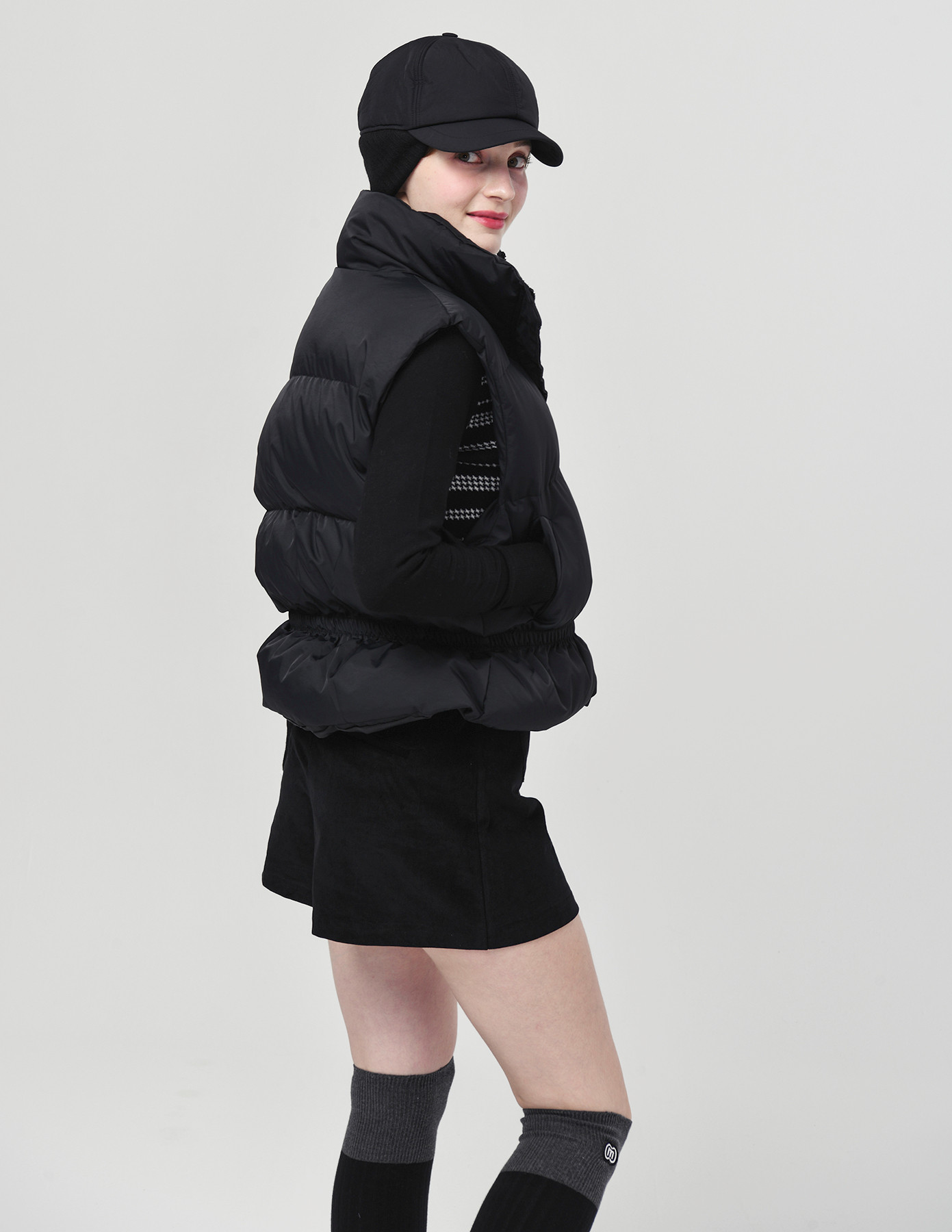 25FW 스텐드 카라 허리 밴딩 블랙 패딩 베스트