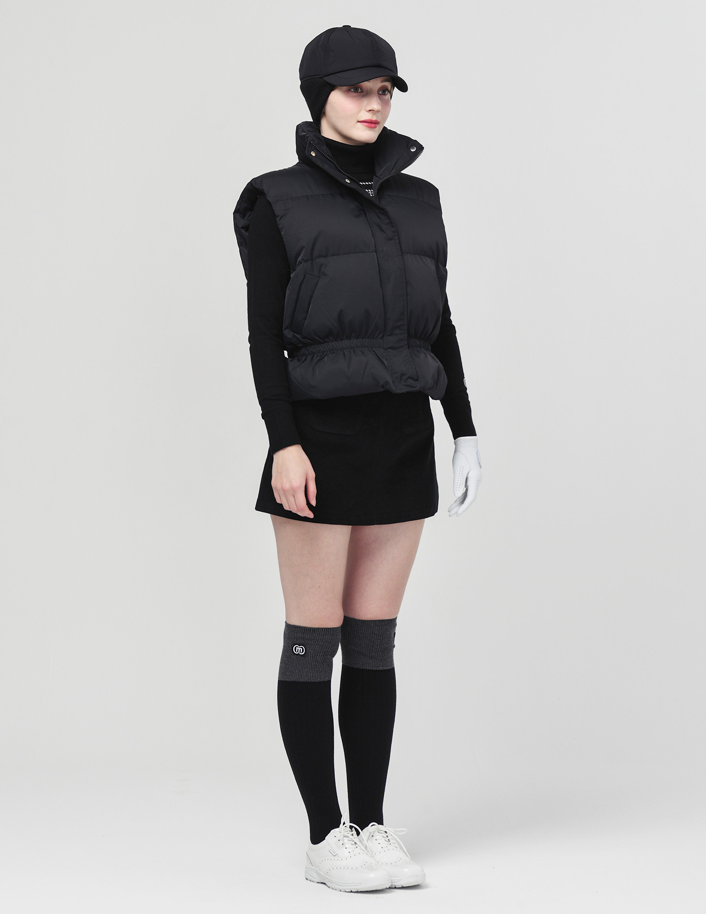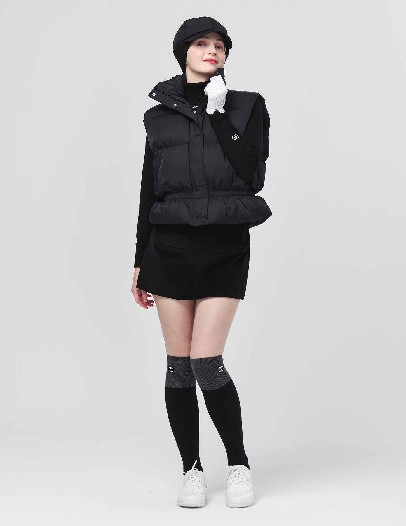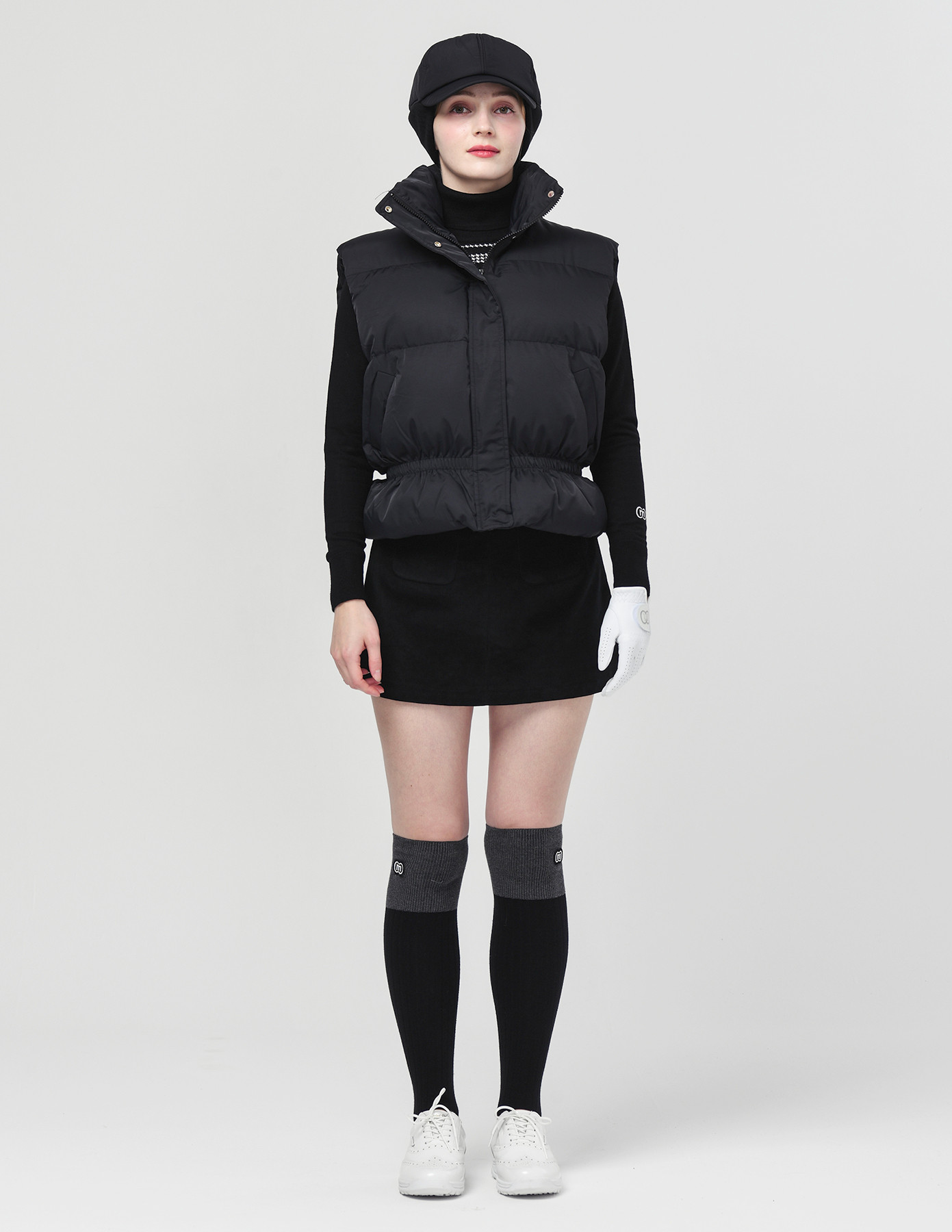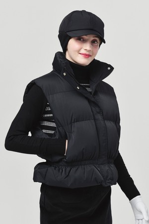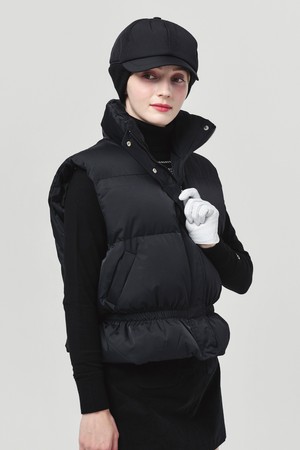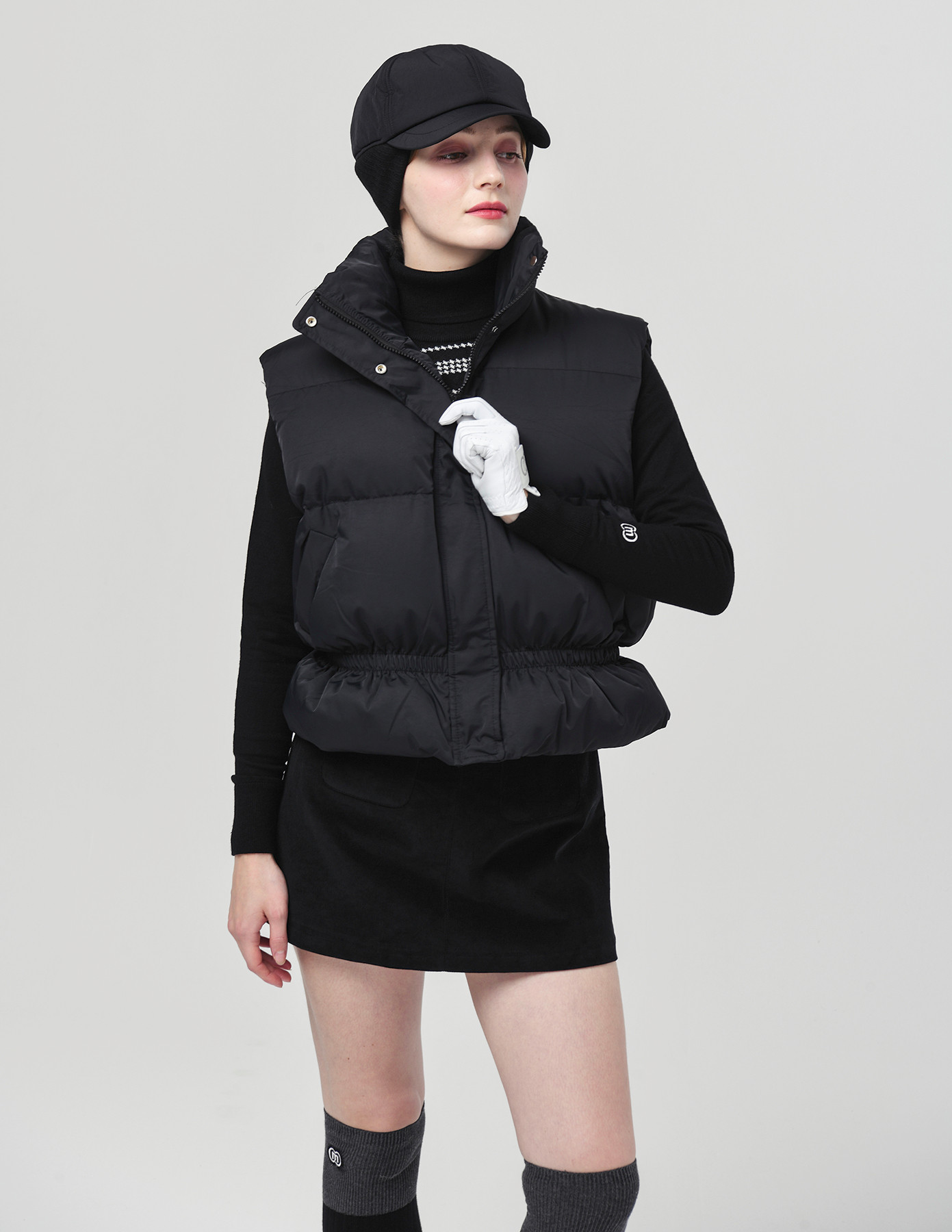 25FW 스텐드 카라 허리 밴딩 블랙 패딩 베스트
