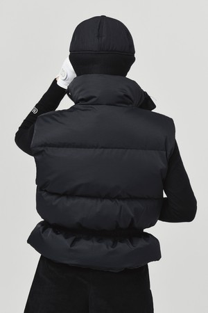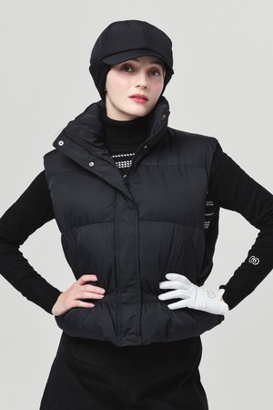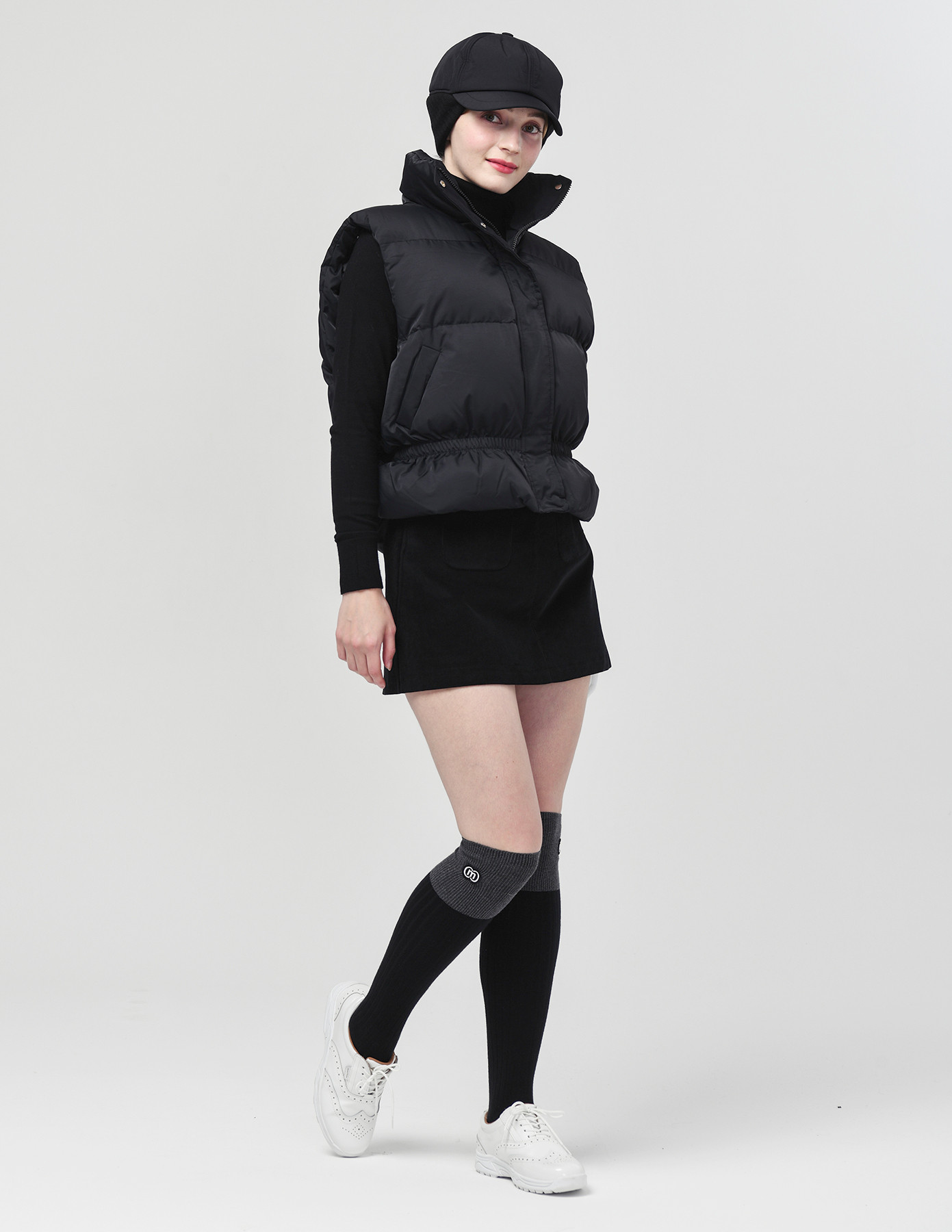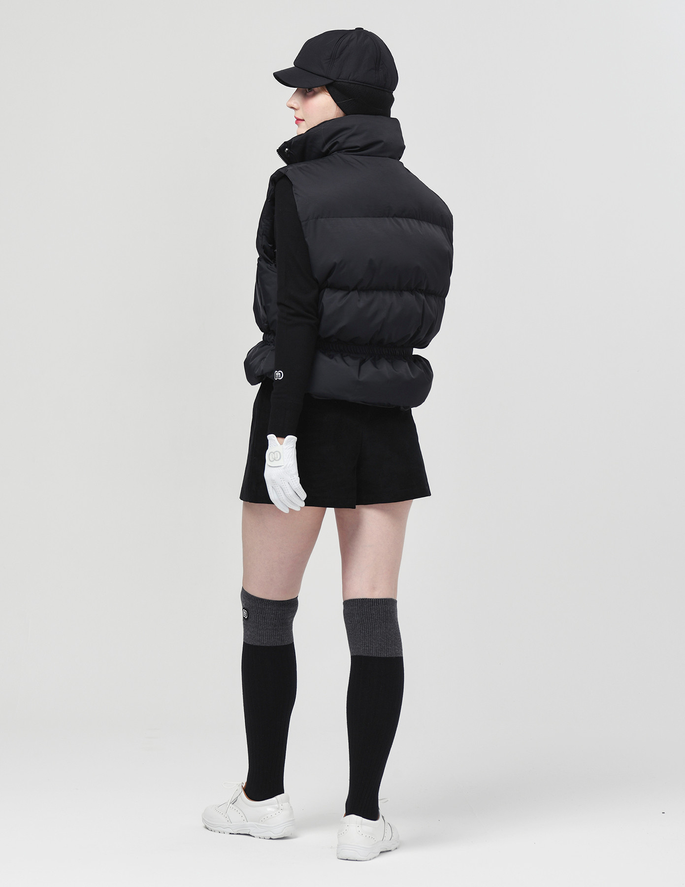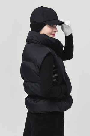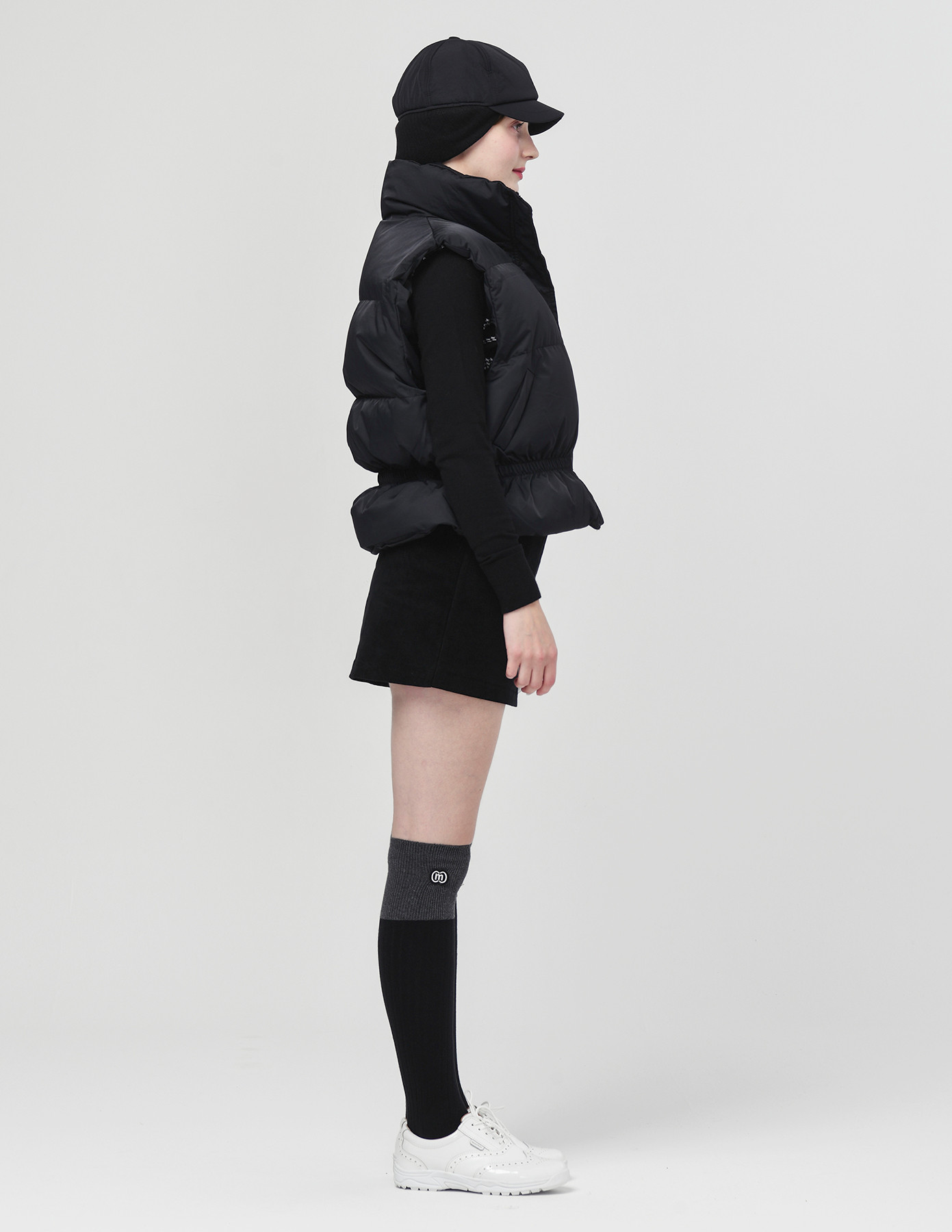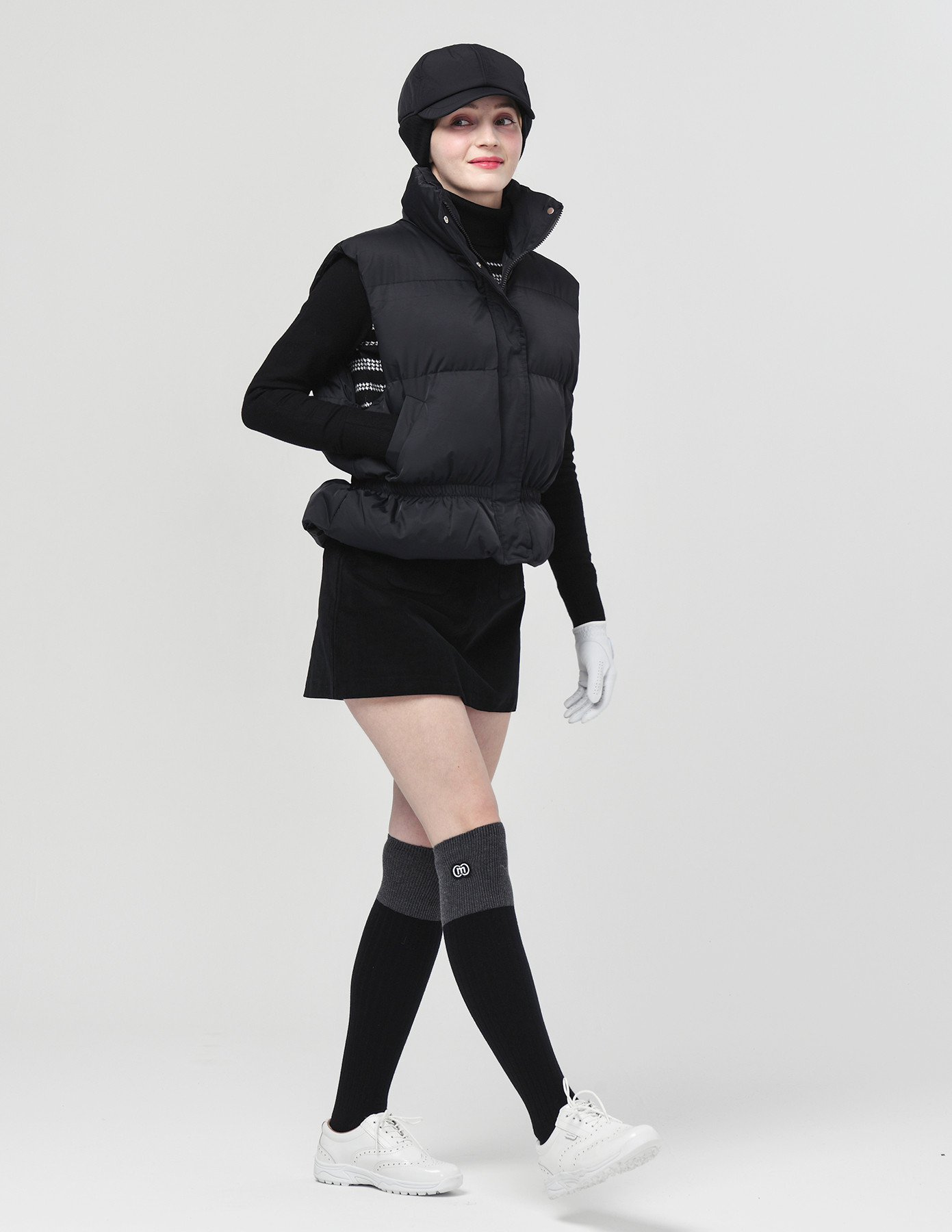 25FW 스텐드 카라 허리 밴딩 블랙 패딩 베스트