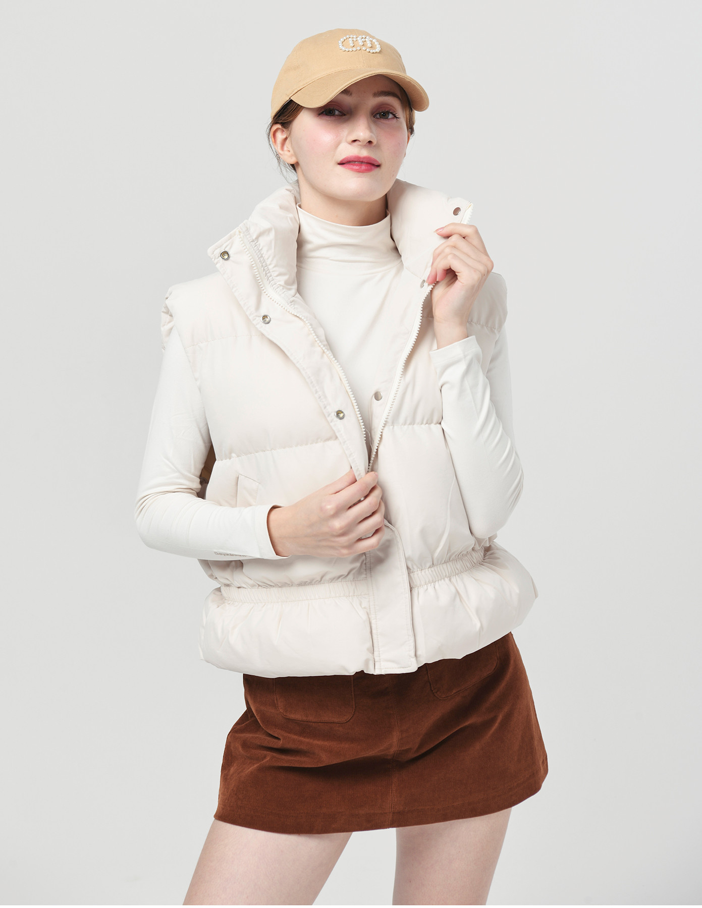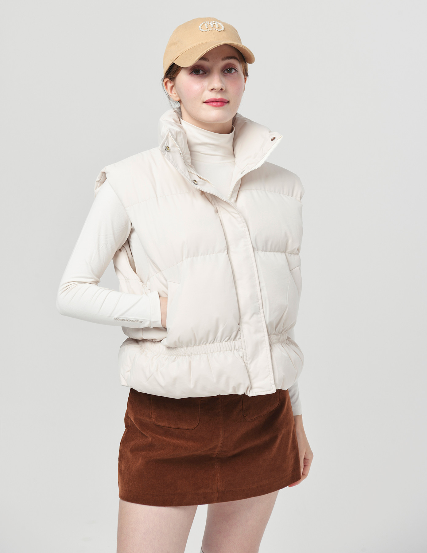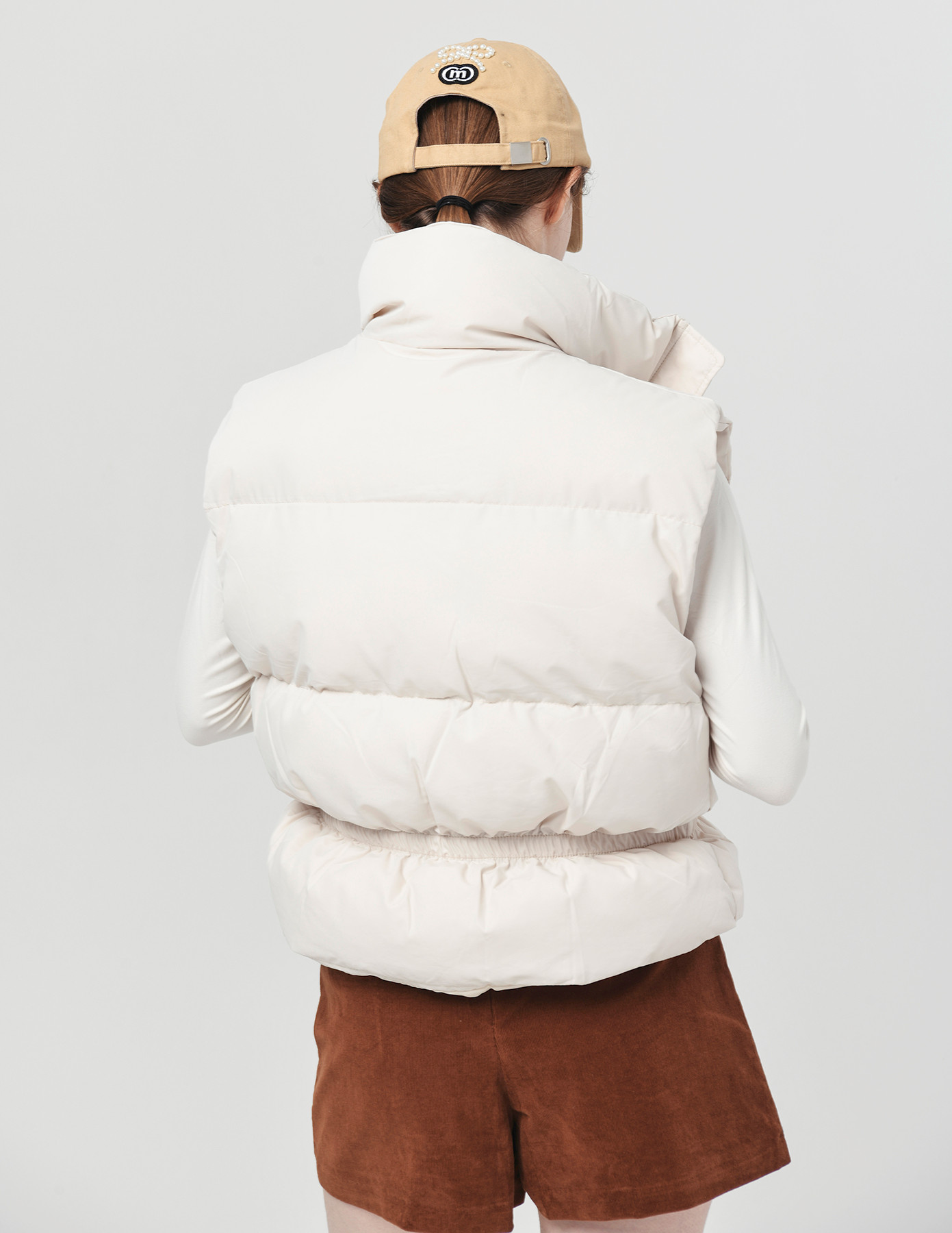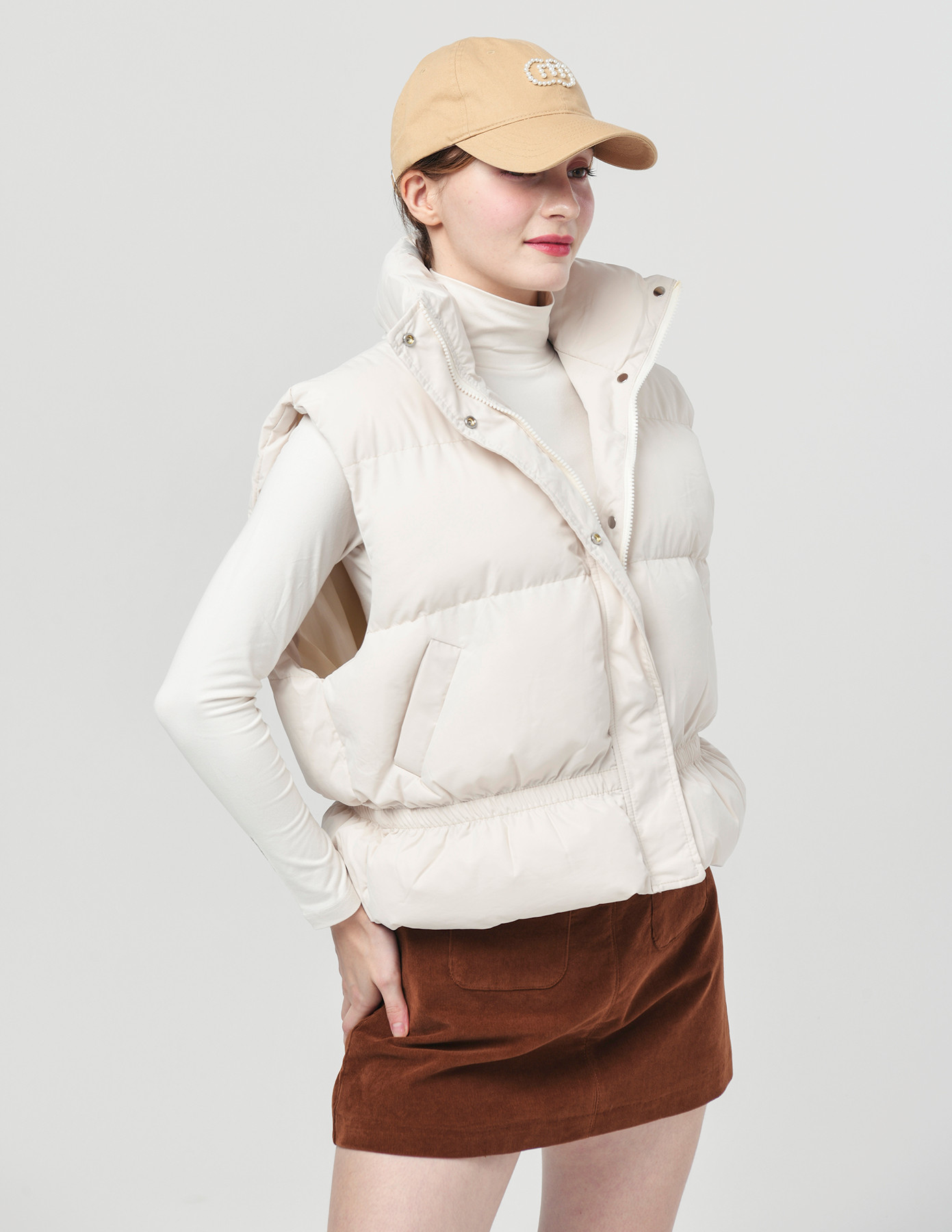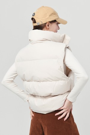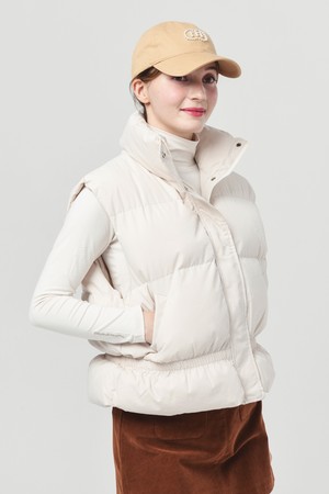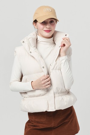 25FW 스텐드 카라 허리 밴딩 아이보리 패딩 베스트