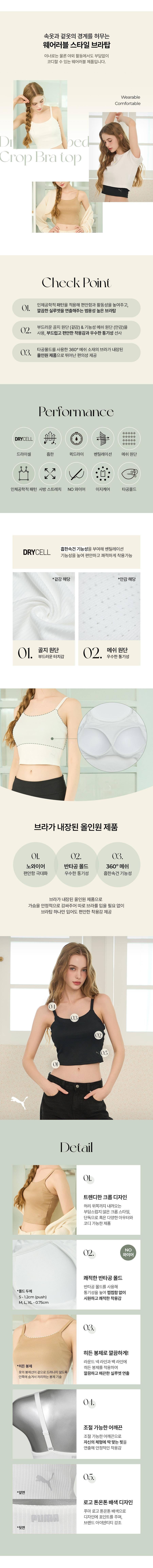 여성 드라이셀 골지 브라탑 3P