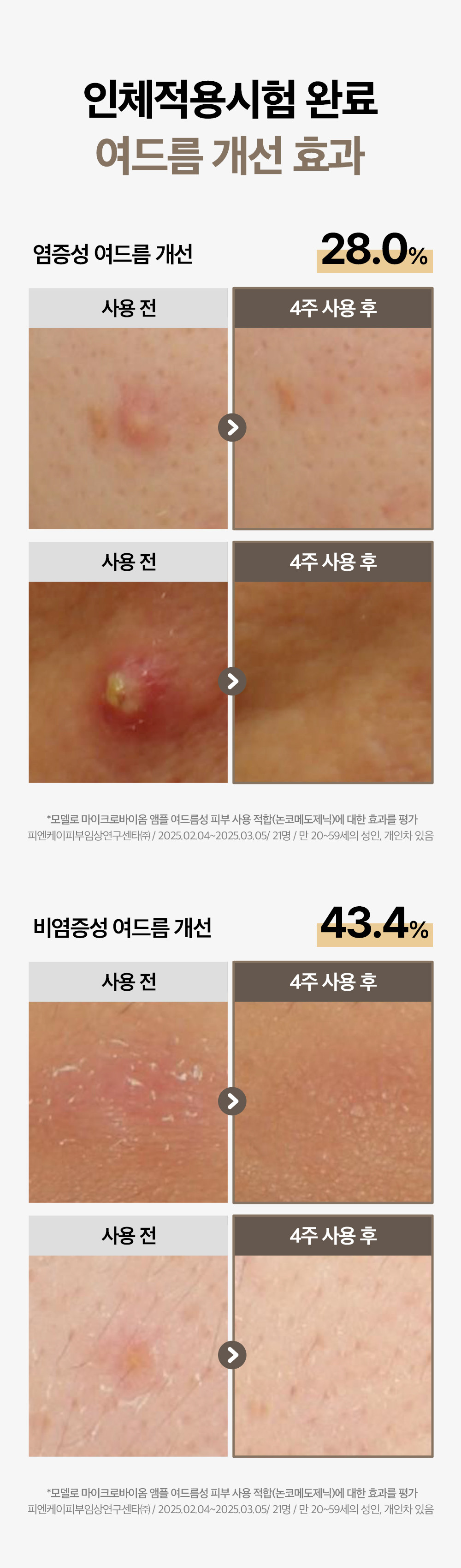 | 화장품법에 따라 기재,표시하여야 하는 모든 성분 | 토너)정제수, 다이프로필렌글라이콜, 부틸렌글라이콜, 1,2-헥산다이올, 나이아신아마이드, 에피데르미디박테리움 케라티니발효여과물(18,600ppm), 아이리쉬모스추출물, 비피다발효용해물(3,875ppm), 사탕수수추출물, 소듐하이알루로네이트, 로즈마리잎오일, 하이알루로닉애씨드, 하이드롤라이즈드하이알루로닉애씨드, 에리스리톨, C12-14파레스-12, 옥틸도데세스-16, 판테놀, 에틸헥실글리세린, 아데노신, 트로메타민, 토코페롤, 만노오스, 리보오스, 카보머 앰플)에피데르미디박테리움 케라티니발효여과물(744,000ppm), 부틸렌글라이콜, 다이프로필렌글라이콜, 메틸프로판다이올, 프로판다이올, 정제수, 1,2-헥산다이올, 에톡시다이글라이콜, 나이아신아마이드, 클로렐라 불가리스추출물, 말라카이트추출물, 소듐하이알루로네이트, 로즈마리잎오일, 하이알루로닉애씨드, 하이드롤라이즈드하이알루로닉애씨드, 베타인, 글루코오스, 소듐폴리아크릴로일다이메틸타우레이트, C12-14파레스-12, 프룩토올리고사카라 |